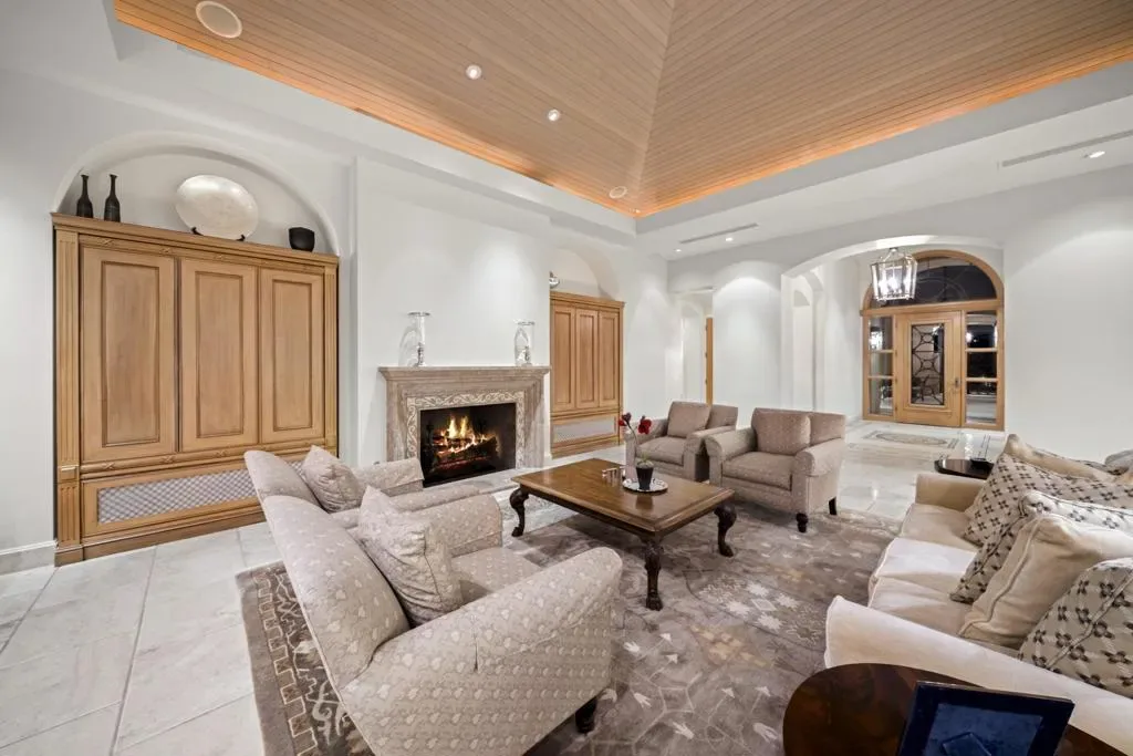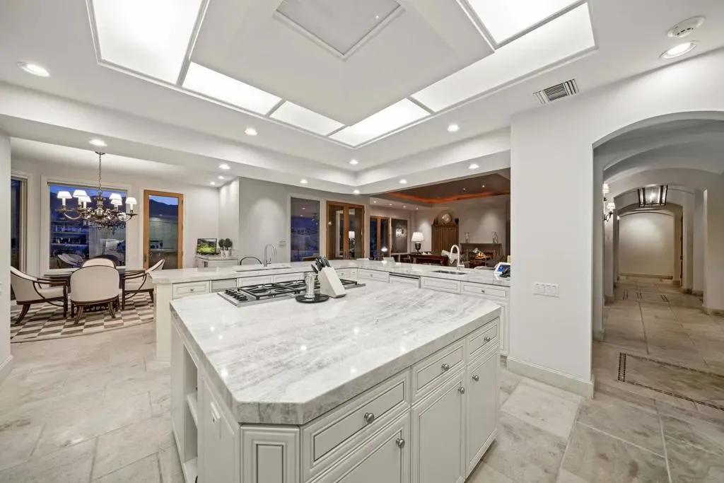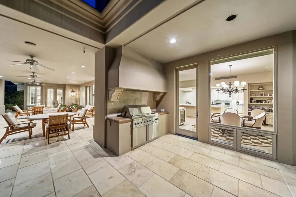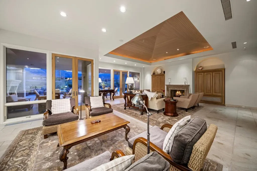 Exceptional quality, views and location of this stunning and sunlit Reserve home offer you a move-in ready desert retreat of your dreams to enjoy right now! Pristine and loving care are apparent when first stepping onto the walkway of this custom 5,754 sq. ft. Desert Villa, through an exquisitely designed gate into the entry courtyard. Across from the soothing fountain and art sculpture is the private guest casita with separate living area. The floor plan was opened to accommodate great room living and both casual and formal dining. The attention to detail is noted throughout this solar-owned home with wood ceilings, updated kitchen, extra storage in the custom built-in cabinetry, elegant fireplaces, stone baseboards and garage tile flooring. The covered living and dining areas overlook the pool/spa and double fairways to the South, with views of the Santa Rosa Mountains and evenings of sky-filled sunsets. The Reserve Club offers world class amenities including a Tom Weiskopf-Jay Morrish designed championship golf course, three Trophy Holes and a double-ended practice range. The Club Village includes Clubhouse; Lakehouse for casual dining; Fitness Center with exercise rooms, extensive cardio equipment, Jr. Olympic size pool, Tennis and Pickleball; and Golf Shop.