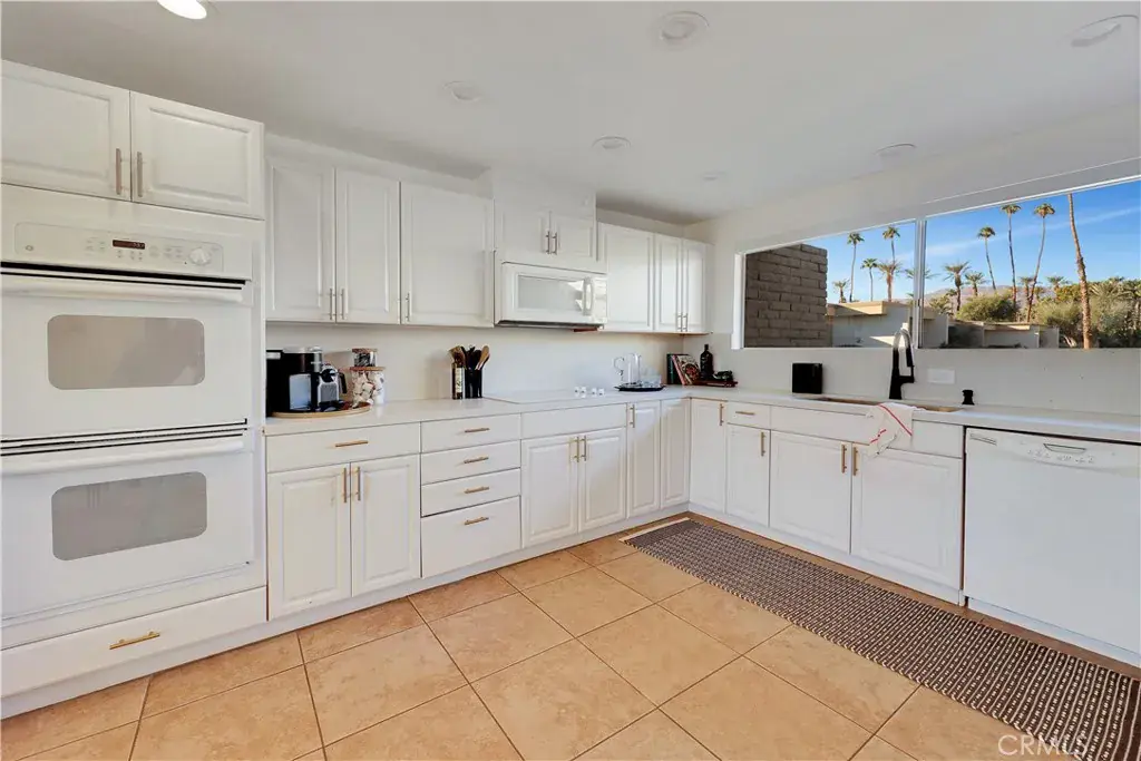 Sunlight floods the home through floor-to-ceiling windows, highlighting serene mountain and palm views and creating a warm, inviting atmosphere throughout. The newly renovated kitchen is a chef’s dream, featuring sleek countertops and a generous workspace, effortlessly flowing into the bright and open living areas. Entertain with ease or unwind as the indoor spaces connect seamlessly to the pool and spa, just steps from your door.