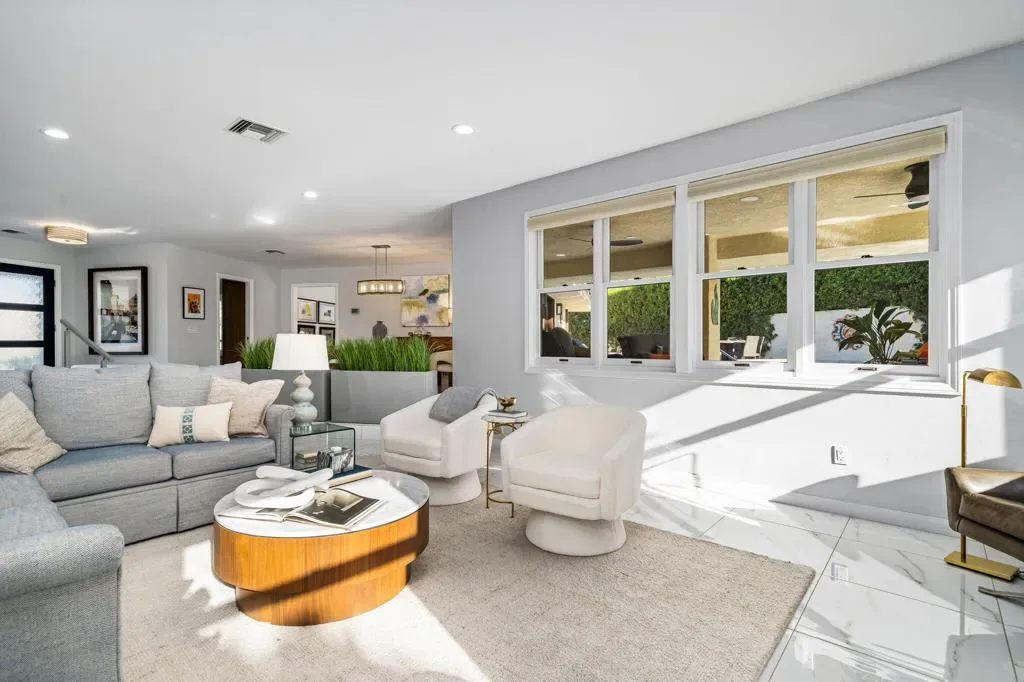 Tucked away at the end of a quiet cul- de- sac within the highly sought after gated community of The Cove in Indian Wells, sits this exceptionally remodeled and reimagined residence. Offering utmost privacy, refined comfort and effortless desert living. All with low HOA dues of $136/ month.Completely remodeled a few years ago, the home blends contemporary sophistication with timeless desert elegance. Spanning approximately 3604 sellers have left no stone unturned in the upgrades of this home Some of the many features include, new high efficiency HVAC unit, tankless water heater. Ceramic tile throughout , a gourmet chef’s kitchen that is ideal for cooking and entertaining. and attached garage with epoxy floors and a split AC unit . Every detail has been attended to with precision.. Walls of glass invite natural light while seamlessly connecting indoor and outdoor living.The south facing backyard with pebble tech pool & Spa is a true private oasis offering maximum sun exposure and tranquility for year round entertaining.Indian Wells residence benefits include discounted golf fees, restaurant discounts, activities and events.The home is ideally located, steps to the Village of Indian Wells and is a short drive to the famous El Paseo and to world class golf. This special home is ready to be enjoyed by the most discerning buyers.