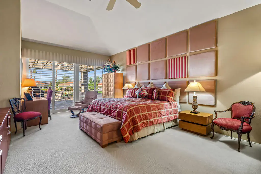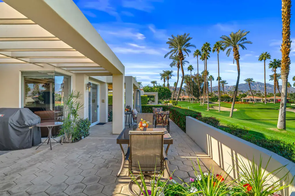 Welcome to a private home located in Desert Horizons County Club in Indian Wells. This beautiful free-standing Winged Foot floor plan has 2,855 sq. feet with two en-suite bedrooms, den/office plus a bonus room being used as a game room. This special elevated lot is on the 12th fairway, on a cul-de-sac and steps from a community pool. Professionally landscaped lot features extensive desert scape, private fountain and wrap around patio spaces. The Country Club has been totally remodeled and has a state of the art workout facility, additionally the pickle ball and tennis courts have been redone to include a pavilion. There is something for everyone.
