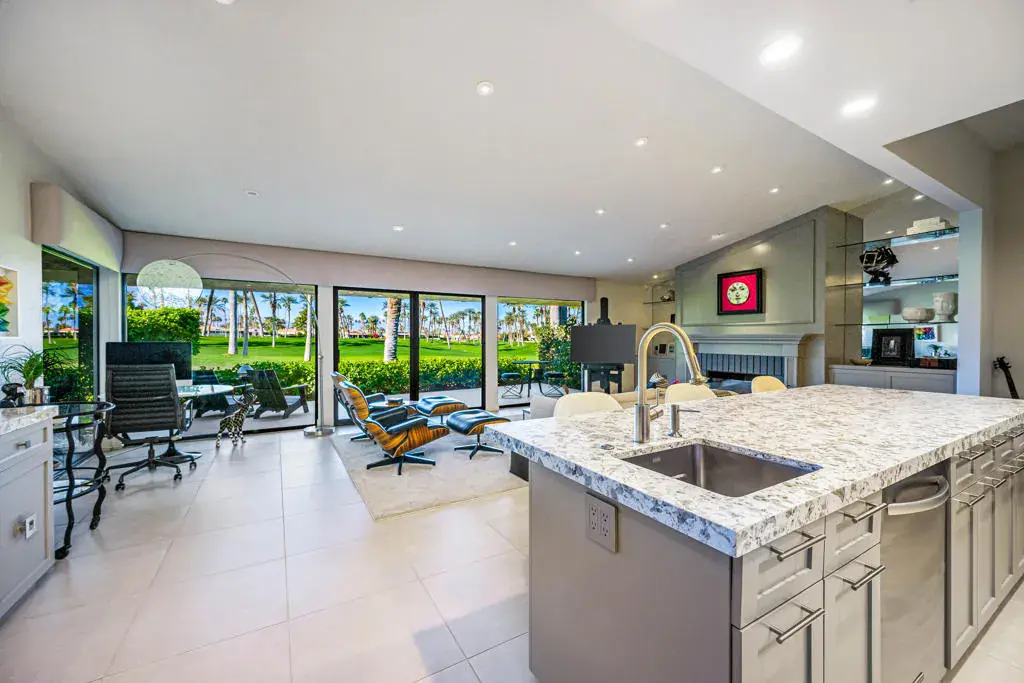 Discover the pinnacle of desert living in this stunningly reimagined 3-bedroom, 3-bath home, nestled within the exclusive Desert Horizons Country Club in Indian Wells. From its west-facing orientation, you’ll wake up to mesmerizing mountain vistas and unwind with sunsets that paint the sky over a picturesque triple fairway. It’s a view you’ll never tire of. Inside, the home has been transformed into a masterpiece of modern elegance and comfort. A newly added structural beam opens up the living and dining areas, creating a spacious, light-filled sanctuary centered around a chef’s dream kitchen. Outfitted with double convection ovens, two sinks, two dishwashers, and abundant storage, it’s a space that’s as functional as it is stylish–perfect for entertaining or indulging your culinary passions. The enclosed atrium enhances the flow of the home, adding extra space and a peaceful ambiance. The primary suite is your personal haven, complete with a spa-like bathroom, a generous walk-in closet, and even an integrated laundry area for ultimate convenience. Every corner reflects careful attention to detail, from the high-end finishes to the impeccable craftsmanship. Recent upgrades include two newer HVAC systems, motorized blinds on west-facing windows, a new awning, and a tiled back patio that effortlessly transitions between indoor and outdoor living. The front courtyard has been reimagined with custom landscaping, a new irrigation system, and a bespoke entry gate, creating a welcoming first impression. Thoughtful touches like stainless steel hinges, plush new carpeting, and an epoxy-coated garage floor elevate the home’s functionality and charm. Whether you’re enjoying quiet mornings, hosting lively gatherings, or simply soaking in the breathtaking surroundings, this home is designed to enrich every moment. Meticulously updated and lovingly maintained, this isn’t just a house–it’s your gateway to an unparalleled desert lifestyle.
