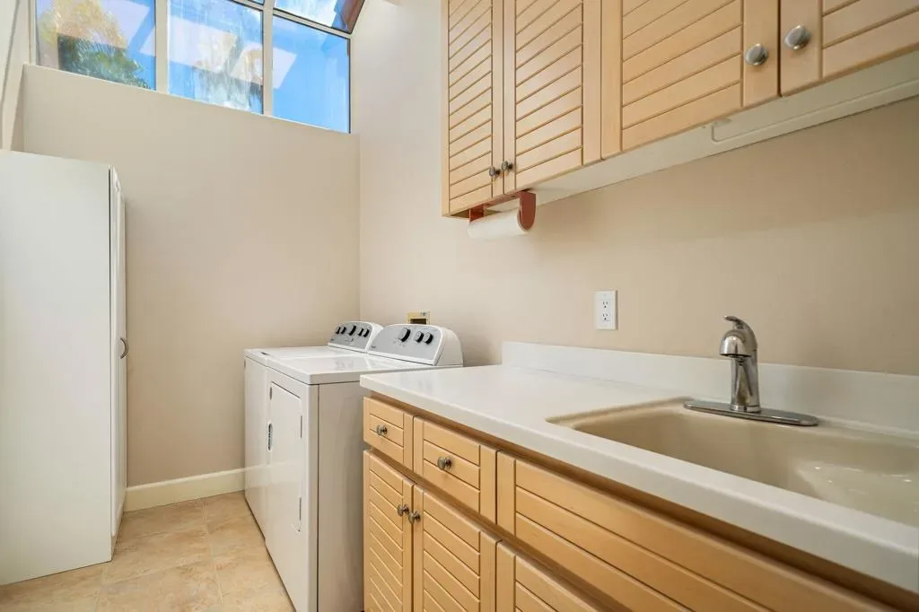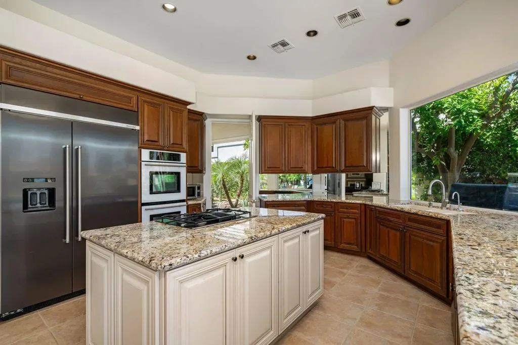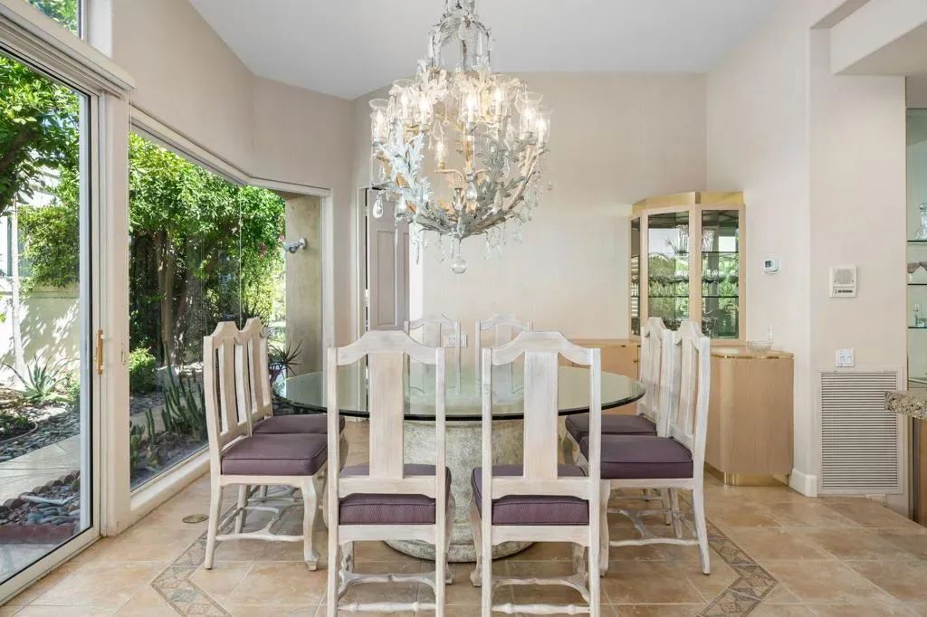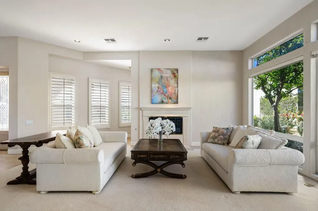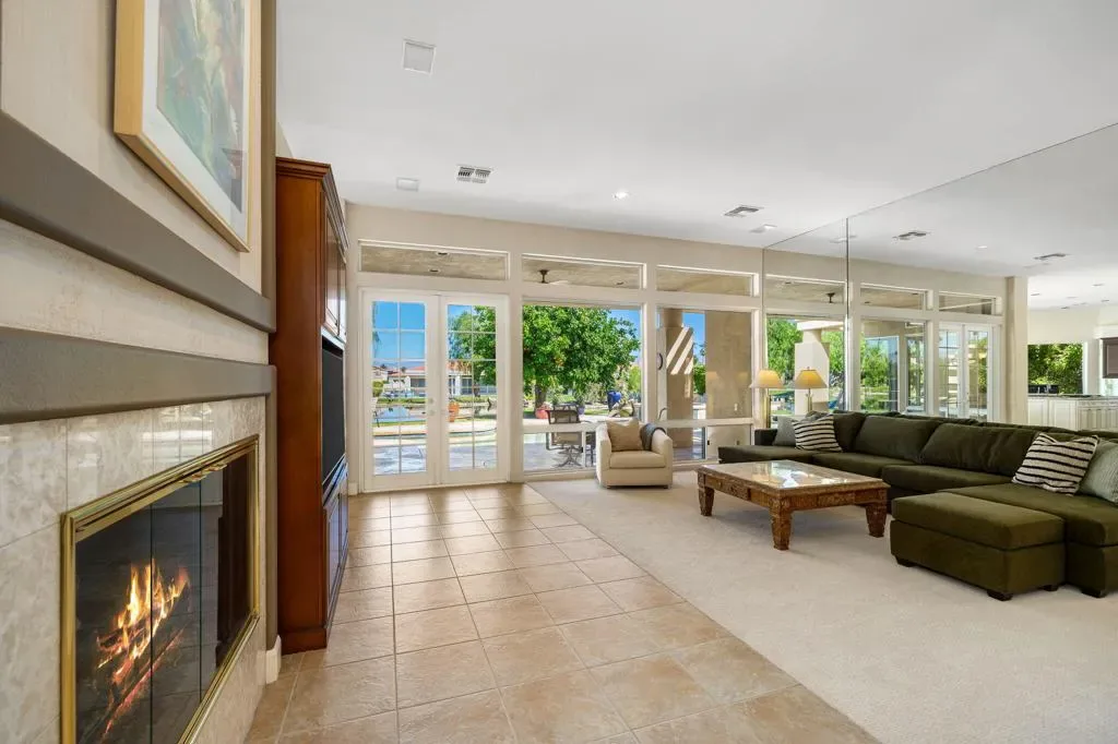 Located in the crown jewel of Coachella Valley, Indian Wells, this home is among the largest currently available in Desert Horizons CC. The uniquely situated property lies between an 18-hole putting green directly across the street, and a tranquil, poolside pond at the rear, creating the essence of a private resort within a resort. Inside, architectural qualities include an abundance of windows filling the interior with natural light, high ceilings, large, roomy rooms, an exceedingly spacious primary bedroom/bath suite, and 3 fireplaces. Religiously maintained by the original owner, an important series of upgrades include complete patio and courtyard redecking (2004), refreshed in 2014; upgraded kitchen cabinetry (2012) and stovetop (2020); new A/C units (2014) with one replaced (2024); a Navien tankless water heater (2025). Laundry room includes washer and dryer. The very sizeable patio has multiple lounging areas, with the pool ideally positioned for all-day sun exposure. The garage offers extensive built-in storage cabinetry, epoxied floors, and accommodates two full-size vehicles plus a golf cart, which is INCLUDED IN SALE!