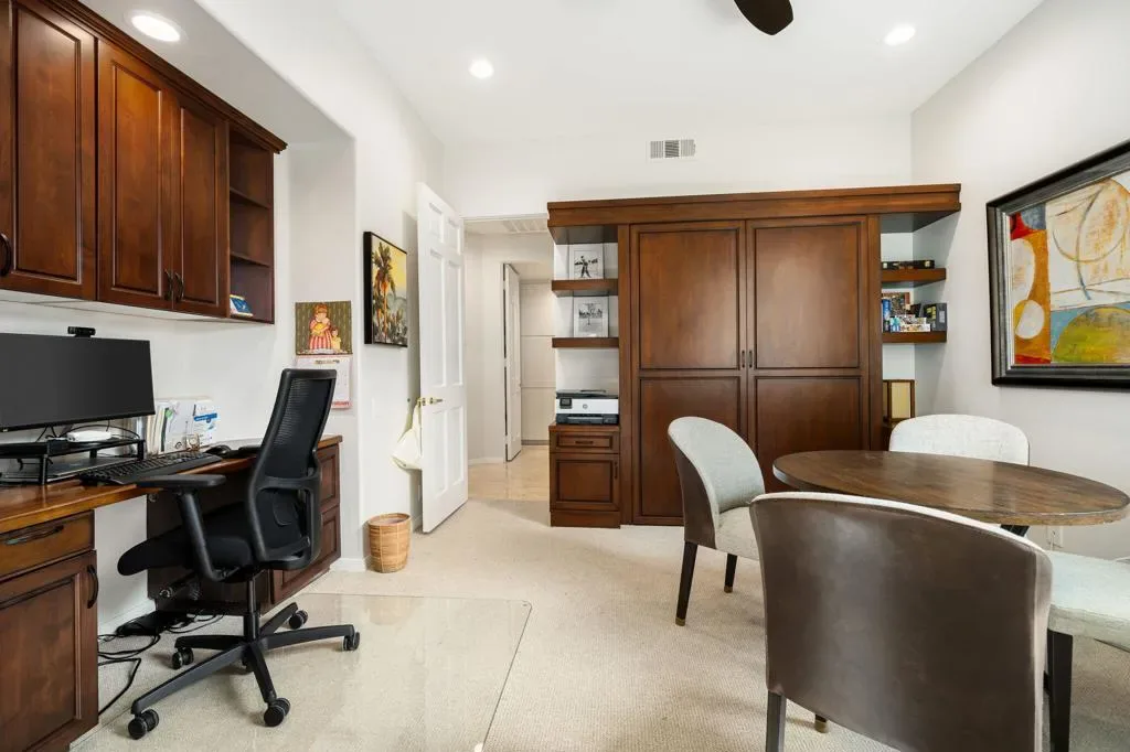 Fairway Views are yours, this highly Upgraded 3 Bedroom Pool home with Solar at Desert Horizons Country Club~ Discover the perfect desert retreat, a beautiful Home showcasing stunning Golf Course and Mountain Views. This popular Troon model features a spacious, bright open floor plan designed for easy living and entertaining. Meticulously upgraded with modern finishes–including new heat pumps, all-new Milgard windows and sliders, stylish lighting, automated blinds, and plush new carpeting to name a few–this home offers comfort and elegance. The well-thought-out layout includes a formal Living Room with a striking slate Fireplace, a Dining Area, and a cozy Family Room with a Wet Bar and Wine Frig. The Chef’s Kitchen boasts a large butcher block Island, custom Cabinetry, Quartz Counters, and Stainless Steel Appliances, all looking out to the picturesque Views. The Primary Suite provides a private sanctuary, a walk-in closet, a Spa tub, and a walk-in Shower. The spacious 2nd Suite features an en-suite bath, and walk-in closet. The versatile 3rd Guest Room includes a Murphy bed and office desk, perfect for Guests or working from home. Step outside to the expansive entertaining Patio with a Private Pool. Additional highlights include a leased solar system, upgraded insulation for energy efficiency, and a spacious 3 car air-conditioned garage complete the home. Imagine cocktails on the Patio as you marvel over the captivating Mountain Vistas, the 8th Fairway and Green- your picture-perfect lifestyle at this premiere Indian Wells location. Offered partially furnished.