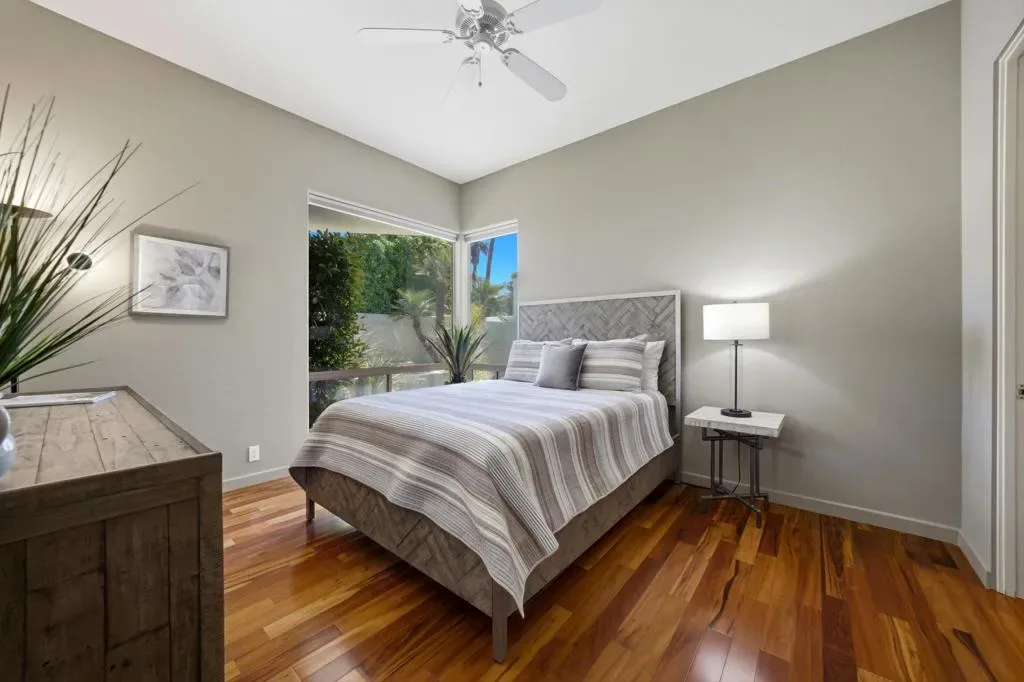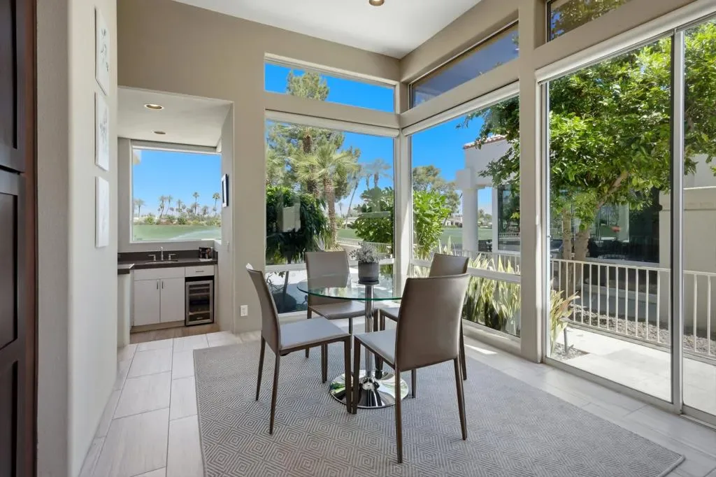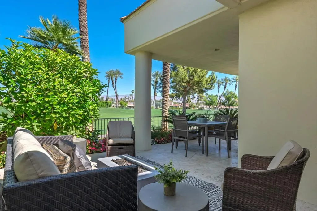 UNBELIEVABLE…Steal this deal! Best Location in Indian Wells! Tastefully Updated & Furnished, Private Pool & Spa home, Guard Gated, Private Golf Club under 900K! Extensive upgrades include beautiful modern offset tile and wood floors, quartz countertops, stainless appliances, sleek double-sided fireplace clad in modern stone veneer, floating natural wood finish media cabinet, custom blinds & more! Great room open floor plan with the adjoining dining room offers ample light with high ceilings, well-placed skylights and expansive windows overlooking the golf course that give an airy indoor/outdoor feel, perfect for entertaining! The home features 3 bedrooms, 3 baths with one bedroom currently being used as a den. Enter the gated & tiled courtyard and you are greeted by sounds of waterfalls spilling into the architecturally designed private pool & spa with South facing mountain views. The Generous back patio is enclosed with a low fence & looks out on the 8th fairway with breathtaking North & West Mountain views. This premier Country Club features an 18-Hole Private Golf Course, newly rebuilt modern club house with indoor and outdoor bars, dining with disappearing walls of glass, A state of the art-5 star 8,000 sq ft Fitness & Wellness Center, Sports Court Pavilion with 11 new pickleball courts, 2 tennis courts, bocce ball courts, catch and release fishing, miniture golf course, water volleyballs and more! Something for the whole family. Largest womens club in the valley! Come visit and see why it’s the talk of the town…the new it place to be!