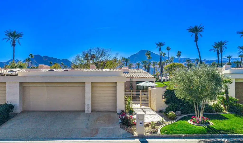 Fabulous South-facing, uniquely Upgraded Golf Course Home with stunning double-Fairway and dramatic Mountain Panoramas! Sophisticated style flows throughout this charming residence, enriched with warm tones, and designer uses of tile, quartz, and stone. Enter through a private gated courtyard into an inviting, entertainer-friendly layout featuring soaring ceilings, gleaming tile floors, and expansive picture windows that frame the exceptional views. The open Great Room offers a Fireplace and step-down wet bar–perfect for gatherings. The upgraded expanded Chef’s Kitchen is designed for the culinary enthusiast, showcasing Thermador Stainless Appliances, rich wood cabinetry, granite surfaces, and a wine cooler. The Primary Suite is a serene retreat with walk-in closet, spa-style bath, and gorgeous views through sliders and windows. A 2nd en-suite Guest Suite provides comfort and Views while the 3rd Guest Suite–currently used as an office–offers its own sliders to the patio and an en-suite bath. Step outside to the ultimate entertainer’s patio with unobstructed South views of Eisenhower Mountain and the double fairways. Dramatic landscape lighting sets the perfect ambiance for Fabulous Sunset Desert Evenings! Additional features include a 2-car garage plus golf cart garage. True desert living at its finest! Newly Updated Desert Horizons Country Club–home to world-class amenities; Dining, new Courts Pavilion with 11 Pickleball Courts, State-of-the-Art Fitness & Wellness Center, private 18-Hole Golf Course, and an exciting calendar of social events.