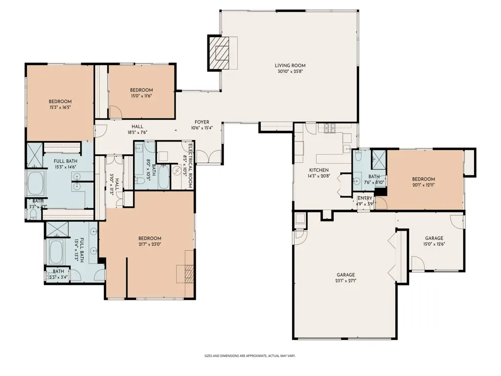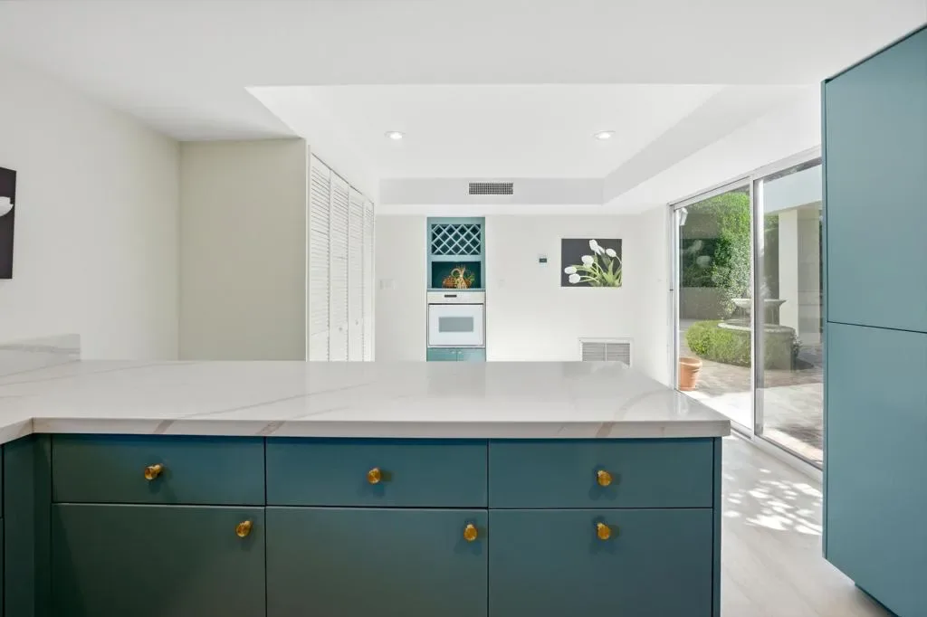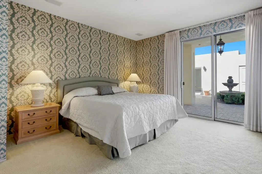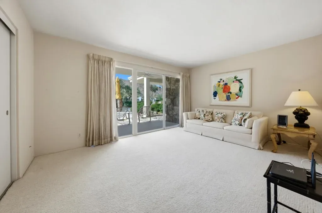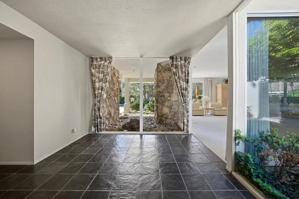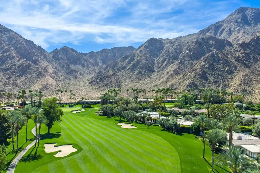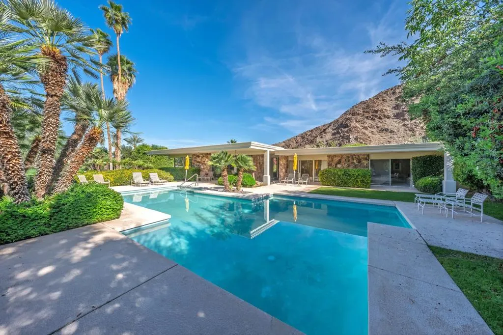 Set on the 15th fairway of Eldorado Golf Course, this spacious 1964 mid-century modern residence captures magnificent southwest mountain and fairway views and delivers the quintessential desert lifestyle. Offering 3,454 sq. ft. of living space on a 17,424 sq. ft. lot, the home blends classic architectural character with comfortable, open-concept living; perfect for entertaining and relaxed everyday enjoyment.A private entry courtyard creates a striking arrival and a welcoming sense of seclusion. Inside, the open living and dining areas feature a stone fireplace, generous gathering space, and a dedicated bar area; ideal for hosting family and friends while taking in the view-focused setting.The kitchen is designed for functionality and ease, featuring quartz countertops, tile flooring, two ovens, a 4-burner cooktop with vent, dishwasher and microwave; ready for everything from casual mornings to dinner parties. The bedroom layout offers excellent flexibility and privacy with two primary suites, a guest ensuite, and an additional guest bedroom with an adjacent hall bathroom–ideal for multi-generational living, extended stays, or a home office option. Outdoors, enjoy a sparkling pool with a new pool heater, framed by dramatic mountain backdrops and lush fairway vistas; your own resort-style retreat. Completing the property are a two-car garage plus a dedicated golf cart garage for effortless course access. Come for the location and stay for the tranquility and views!