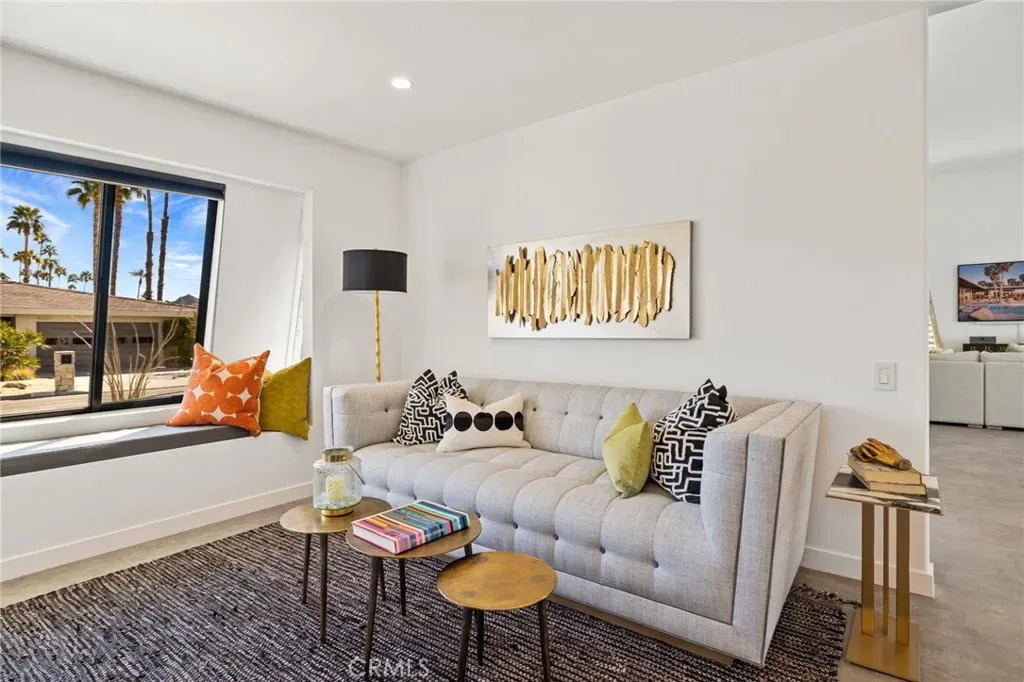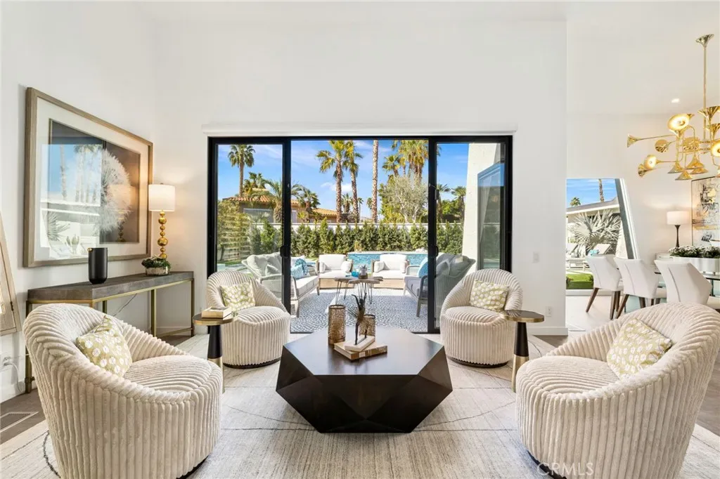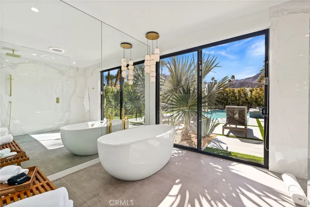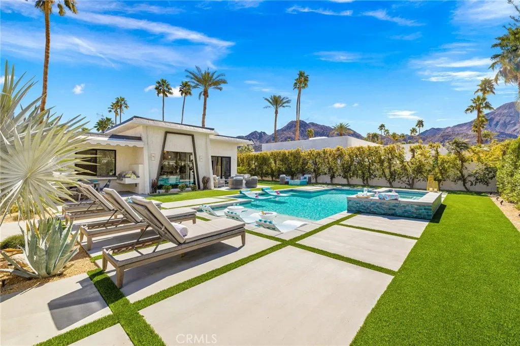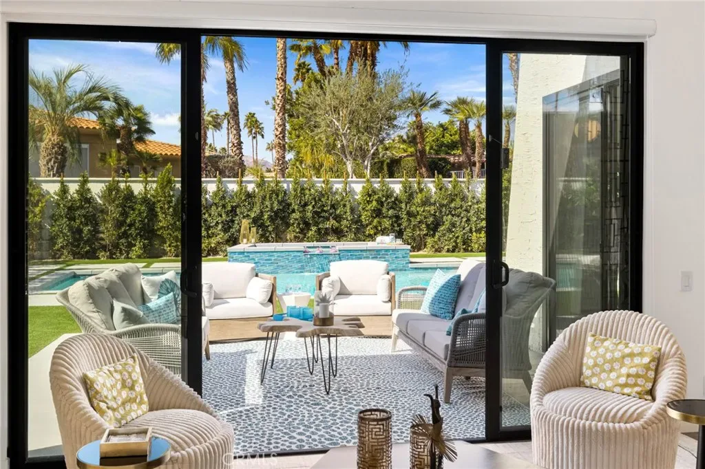 Comprehensively renovated in 2022, the property blends refined materials with an effortless, livable elegance. Outdoors, a newly designed saltwater pool and oversized 12-jet spa are set within lush, private grounds featuring mature desert landscaping and citrus trees including grapefruit, lemon, lime, and kumquat.