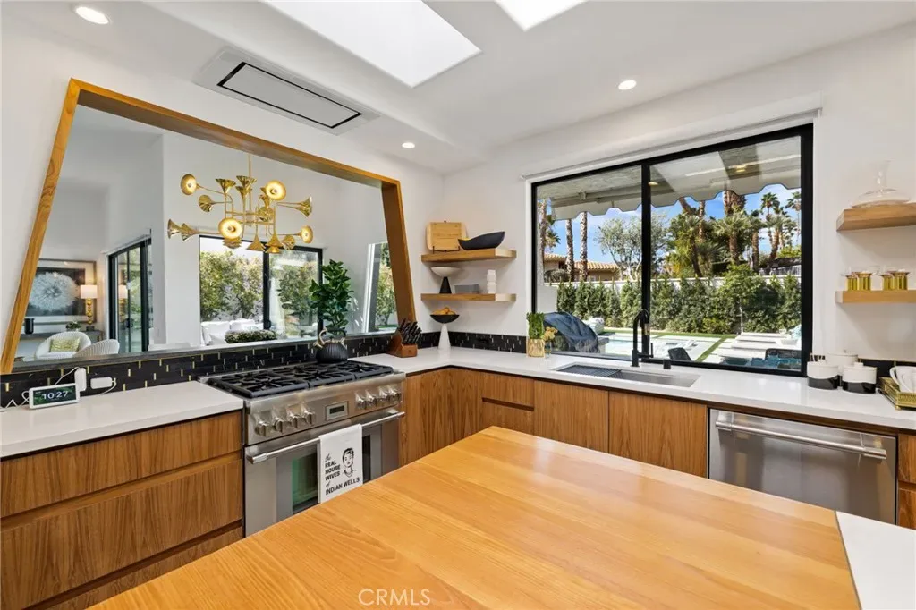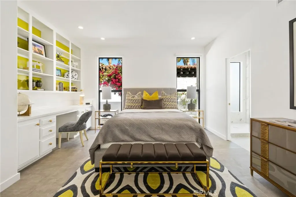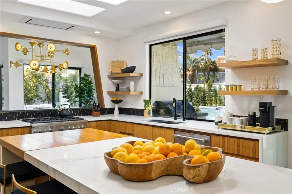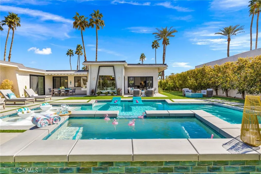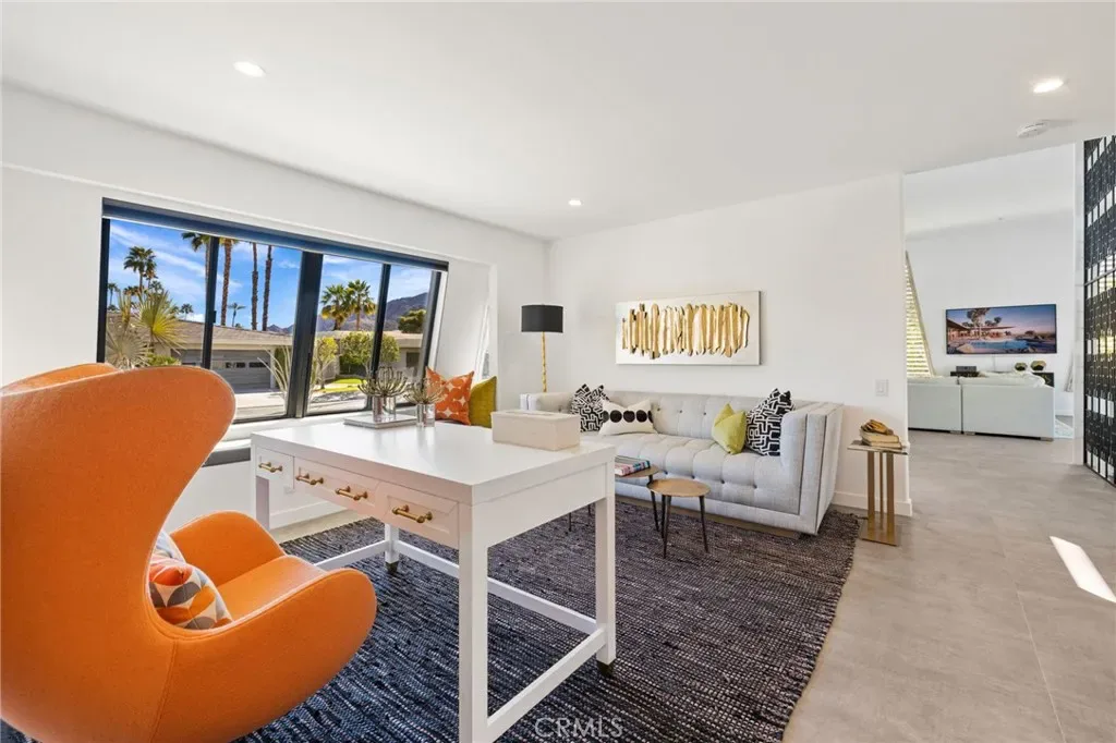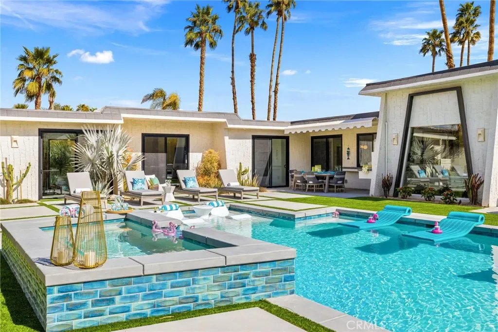 Comprehensively renovated in 2022, the property blends refined materials with an effortless, livable elegance. Outdoors, a newly designed saltwater pool and oversized 12-jet spa are set within lush, private grounds featuring mature desert landscaping and citrus trees including grapefruit, lemon, lime, and kumquat.