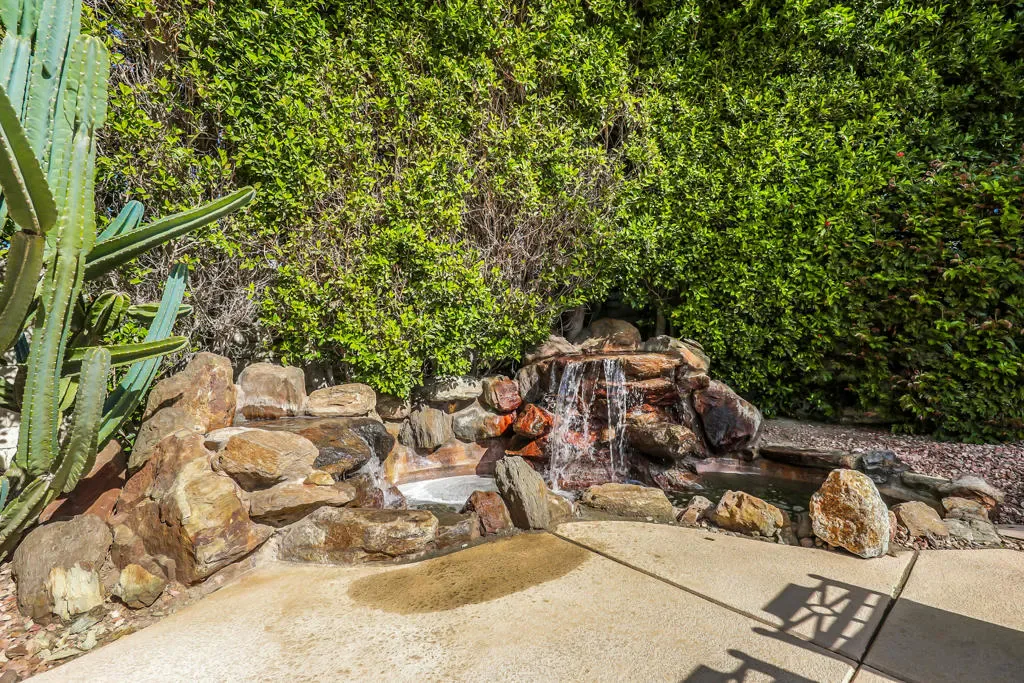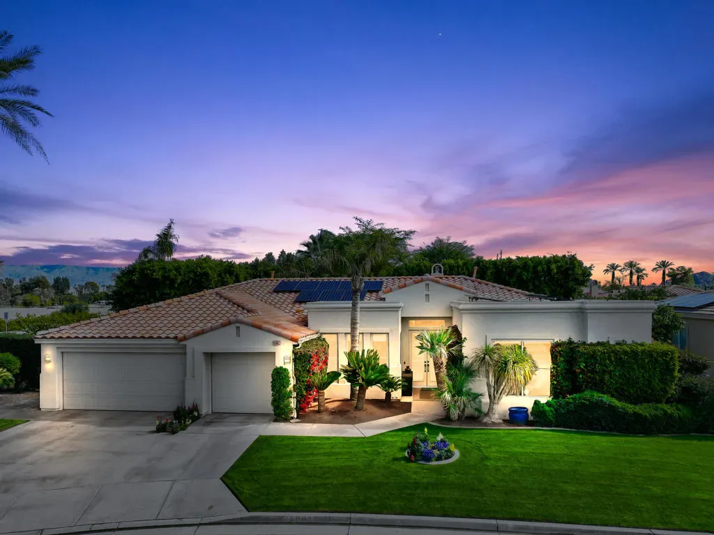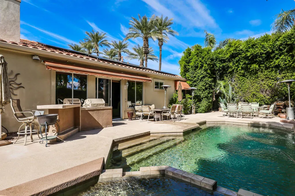 Private Resort-Style Living with Casita, Pool, Putting Green & South Mountain Views in Indian Wells CC, Step into your own private desert retreat–where indoor elegance meets effortless outdoor living in one of Indian Wells’ most desirable communities. Furnished and thoughtfully designed, this 2,378 sq. ft. residence offers four bedrooms, three baths, and a three-car garage, including a private-entry guest casita, within the exclusive Colony Estates at prestigious Indian Wells Country Club. This Tuscan-inspired home has 10-foot ceilings and is positioned on a serene, private lot with sought-after south mountain views. Numerous upgrades enhance both comfort and efficiency, including leased solar. The lush front lawn creates a warm and inviting arrival, while the resort-style backyard for exceptional living–featuring a pebble-tech saltwater pool and spa, golf putting green, expansive patio, and a built-in barbecue island with bar seating–perfect for entertaining or relaxing under the desert sky. French doors open into a light-filled great room and formal dining area, enhanced by new recessed lighting, crown molding, custom built-ins with media center, and a striking granite fireplace–all overlooking the pool and spa. The open gourmet kitchen is appointed with granite countertops, KitchenAid appliances, a center island with bar seating, pantry, and a spacious casual dining area–ideal for everyday living and gathering. The primary suite offers a peaceful retreat with French doors and sliding glass access to the pool and spa. The ensuite bath features granite counters, a large walk-in shower, soaking tub, and generous walk-in closet, along with an additional mirrored wardrobe. Two guest bedrooms are in the main residence; one currently styled as a home office. The guest bath is beautifully updated with granite finishes and a custom-designed shower. The detached guest casita provides exceptional privacy and comfort, complete with its own ensuite bath and a newly finished polished porcelain-tiled shower. Enjoy the best of desert luxury living along with the exclusive benefits of Indian Wells residency.