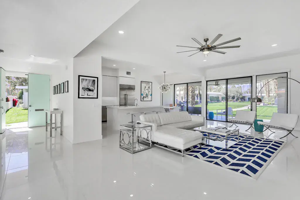 ( *Owner uses March April each year* ) Owner uses March April each year. Original William Krisel renovated to mid-century modern open concept. This sleek light & bright 3-bedroom, 3-bath condominium offers contemporary aesthetics throughout. Near the world renowned Indian Wells Tennis Gardens. Gourmet kitchen featuring Sub Zero fridge + Wolf gas range. Custom gas fireplace and 82-inch smart tv in the living room. 2129sf open floor plan. The walls of glass remain as a signature mark of the original mid-century modern design. 65-inch tv & king bed in both the main bedroom suite and in the second bedroom. 2-full beds in third bedroom. Wi-fi. 125 tv channels, terrazzo tile, no carpet. Instant hot water throughout. Full-size washer & dryer. Firepit, fountain & dining table in the private center courtyard. Mountain views,, lush manicured landscape, pool with shuffleboard area. Weber BBQ. 2-car garage is mere steps to the front door. Guest parking. 24-hour manned gate & roving patrol. Indian Wells CC is a member of the INVITED family of clubs (formerly Clubcorp). No memberships are included. Mail is delivered to your door. Utilities included with $200 monthly rate cap. Concierge trash service means you never have to worry about which day is trash day. (*Booked May- October 2024*) (*Booked Jan- Feb 2025*)