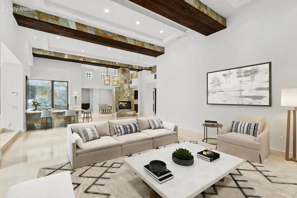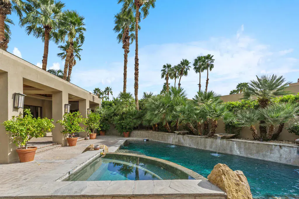 This stunning home in Painted Cove of Indian Wells Country Club is an entertainers delight. Whether on the patio by the pool/spa, or at the barbeque, listening to the water falls or viewing the beautiful mountains from outside or inside by the bar, wine cellar, dinning room or livingarea, each flowing seamlessly one to the other only stopping to view the mountains. This 3800 Sq. Ft. home features 3 bedrooms {One is an attached Casita} an office + 3.5 baths. The primary bedroom is large yet comfy with a fantasy bathroom and walk-in closet. The kitchen is a gourmet’s delight with top of the line appliances, counter pace galore and cabinets aplenty. This home and patio entertaining areas afford privacy and elegance. This home has owned solar.