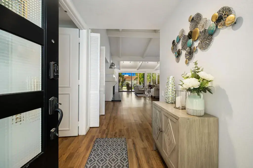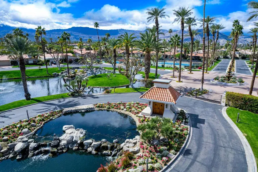 Welcome to Los Lagos in Indian Wells — Desert Living at Its Finest!Step into this beautifully updated home situated in the sought-after community of Los Lagos, located in the heart of Indian Wells. This turnkey furnished residence is ready for immediate enjoyment and offers a perfect blend of comfort, elegance, and desert charm.Featuring two master bedroom suites and a third en-suite bedroom, this home offers 3 bedrooms and 31/4 baths designed for an effortless desert lifestyle. The grand living room features soaring ceilings, a signature fireplace, and a wet bar with wine refrigerator–ideal for entertaining. The remodeled kitchen showcases an expanded island, ample cabinetry, and opens to an inviting den with its own fireplace, creating an intimate gathering space for family and friends.Recent upgrades include new: stylish flooring throughout the main living areas, second master en-suite bedroom with full bath, a separate powder room, and a reimagined kitchen perfect for hosting. Outdoors, relax to peaceful stream views or enjoy a lush side yard with shaded gazebo–ideal for alfresco dining under the desert sky. Located minutes from world-class golf, tennis, dining, shopping, and entertainment, Los Lagos offers true resort-style living. A must-see opportunity.