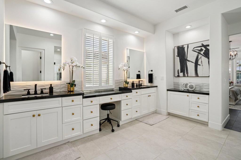 This stunning turnkey resort style home at 76215 Via Fiore has been completely updated since ownership, showcasing modern elegance and thoughtful upgrades throughout. The home features new flooring finished with imported Italian tile, new cabinetry, and a beautifully redesigned fireplace with floor to ceiling Italian tile, creating a cohesive, high end finish throughout the living space. Enhanced lighting brightens every room, while all bathrooms have been fully remodeled including a reimagined primary bathroom with a sleek, contemporary aesthetic.After you enter the gated community you will see a north facing front door welcomes you into an inviting open concept layout that feels private and set apart from the surrounding homes in Indian Wells. Both AC units were replaced in 2021, leased solar, and the water system was upgraded in 2022, giving the next owner peace of mind with major systems already updated.To top it off, this community offers exceptional value with a low HOA of just $260 per month, granting residents exclusive access to the Miramonte Resort amenities as well as the Hyatt. Golf is also deeply discounted for residents at only $35 per round, compared to the standard $300 nonresident rate, making this one of the most desirable lifestyle opportunities in Indian Wells.