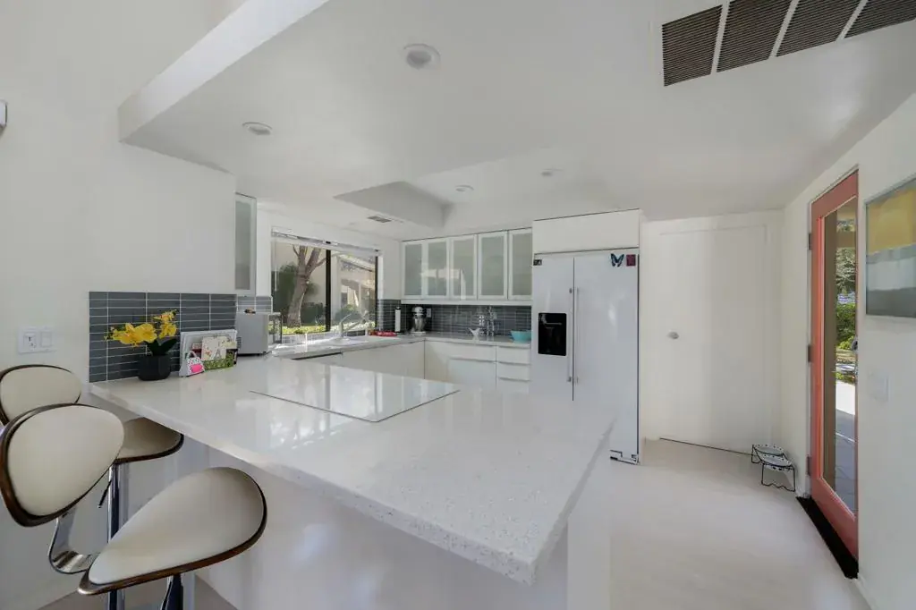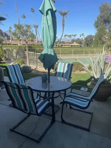 AVAILABLE Nov, 2025. – Feb 2026. Leased March/April 2026. This Adorable 3 Bedroom – 3 Bath updated condo with Mountain and Pool Views~ located behind the gates of Indian Wells Country Club in Mountain Cove. The bright, open floor plan is spacious with lots of natural light from the vaulted wood beam ceilings out to the magnificent views of the mountains! This tastefully decorated home offers 3 bedrooms each with their own en-suite bath, private patios and TV’s in each room. The Primary Suite has a King-size bed and Walk-in closet. Guest Bedrooms have Queen-size beds. The Living Room offers a cozy Fireplace, Desk and a 65 inch TV. The beautiful updated bright white Kitchen has custom cabinetry with all the Kitchen amenities, Dining table and a Patio leading out to the BBQ. Features Tile throughout and Ceiling Fans in each Room. Interior Laundry room. Step out to the Patio; perfect for entertaining with views of the Pool and Mountains~just steps to the community pool. Golf Cart available. Minutes away from the BNP Paribas Tennis, Golf, Dining and Shopping experiences of upscale El Paseo in Palm Desert.