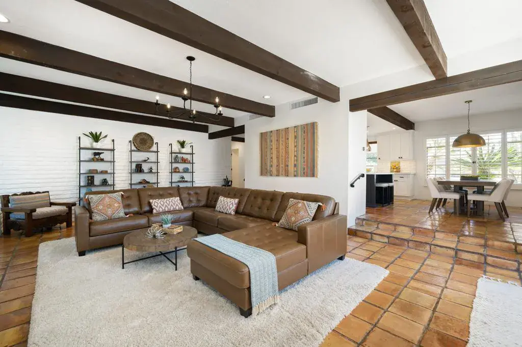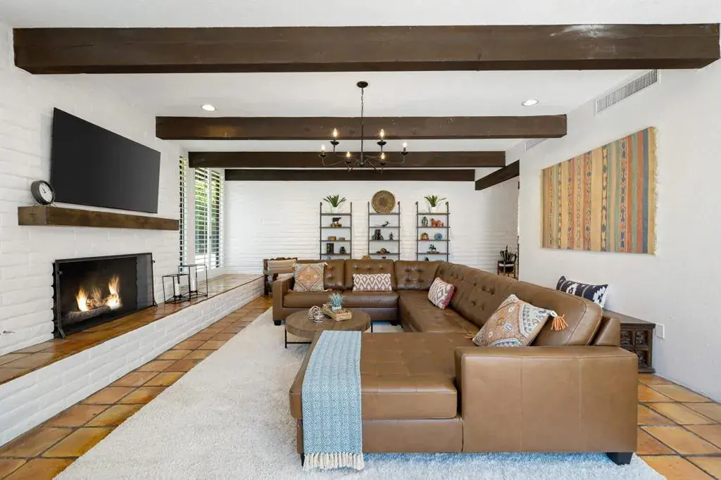 Leased Dec. 1, 2025 – April 31st, 2026. Available May – Oct. call for pricing~ Come and enjoy the ultimate desert lifestyle~ You will find this beautiful furnished 3 bed/3 bath updated home nestled in a cul-de-sac in prestigious Indian Wells. Gorgeous Southern Mountain Views await you. Enter through the double doors into this modern Hacienda home of unique finishes, Saltillo tile & wood plank floors. As you step down to the living room, there is a dramatic wall to wall windows, wood beamed ceilings w/large screen TV & as your focal point a floor to ceiling Brick Fireplace. The fully equipped Chefs Kitchen features; center Island, slab Quartz counters, custom back splash, custom finished cabinetry & Stainless Steel Appliances w/ 6 burner Gas Range/Electric Oven. Dining for 8 w/ Bar & Wine Cooler. Luxuriate in the Primary Suite with walk in shower, double waterfall shower heads, dual vanities, King-size bed and sliders that lead out to patio area. Guest Bedrooms, one with a King Bed and the 3rd with a Queen bed, TV’s and ceiling fans. Interior Laundry. Entertaining Patio invites you into a newly replastered-saltwater sparkling Pool & Spa, Imagine cocktails on the Patio as you marvel at the sunsets enjoying the large private backyard, various Cactus & mature Fruit Trees- your picture-perfect lifestyle at this premiere Indian Wells location. 2 Car attached garage complete the home. High speed Internet & Spectrum TV. Minutes away from Golf courses, Shopping & Dining.