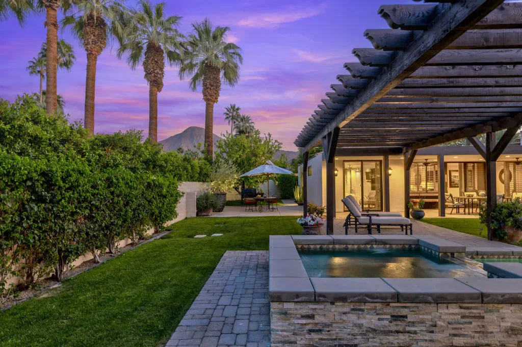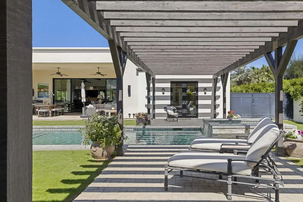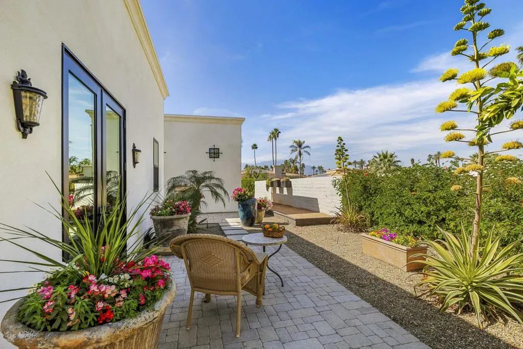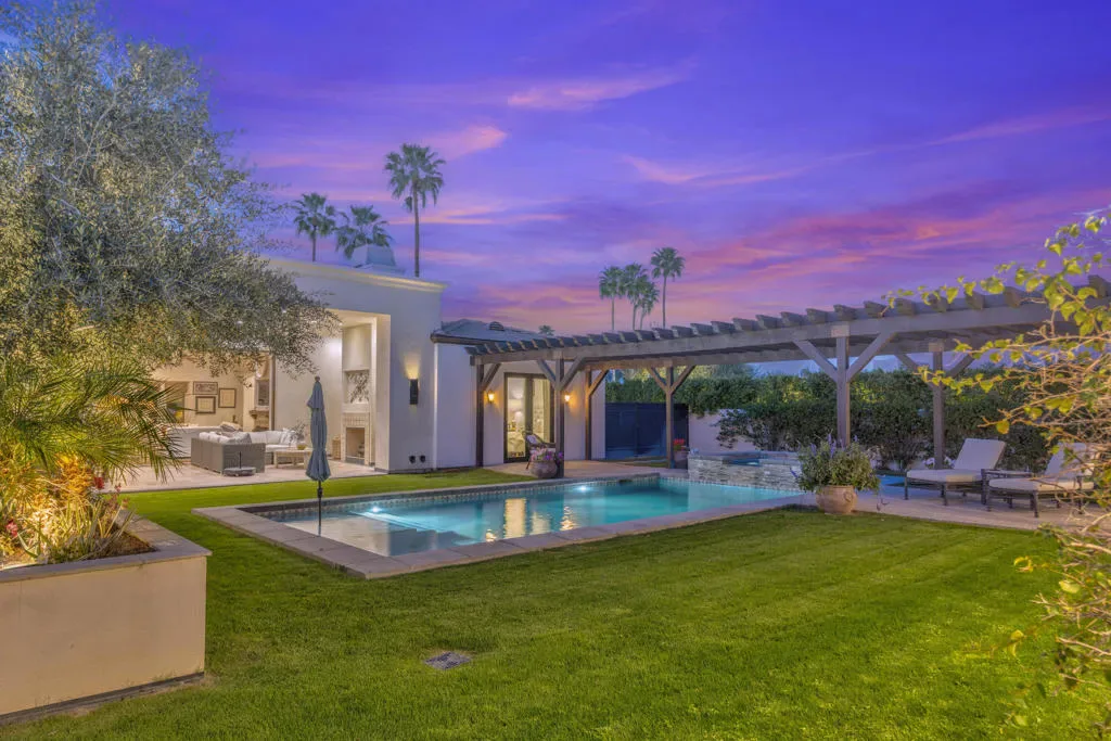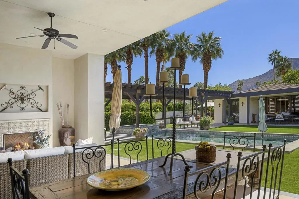 Offered for the first time, this exceptional custom estate in Indian Wells captures stunning south-facing views of Eisenhower Mountain from a premium cul-de-sac location in one of the city’s most desirable pockets. Thoughtfully designed around the property’s original casita, the sellers positioned the main residence to maximize views & create a seamless indoor-outdoor lifestyle centered around a private pool courtyard. Custom-built in 2020, the main residence features engineered hardwood flooring, double kitchen island in a Chef’s kitchen, expansive pocket sliders opening to the pool & beautiful Spanish tile details throughout. The main home offers 2 bedrooms & 2 baths with light-filled living spaces oriented to the dramatic mountain backdrop. Across the pool, the detached casita lives as its own residence with 2 bedrooms, 2 bathrooms and living space, with the second bedroom added in 2012. Multiple outdoor seating areas connect the two homes while maintaining privacy & flexibility for guests. Offered furnished per inventory. Enjoy the benefits of Indian Wells residency including golf & dining privileges, BNP Paribas Open tennis access & use of the Grand Hyatt Indian Wells spa & fitness center.
