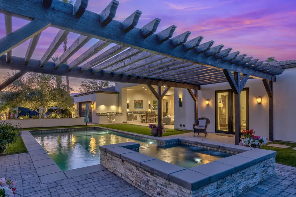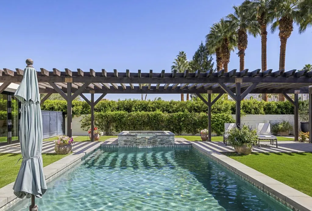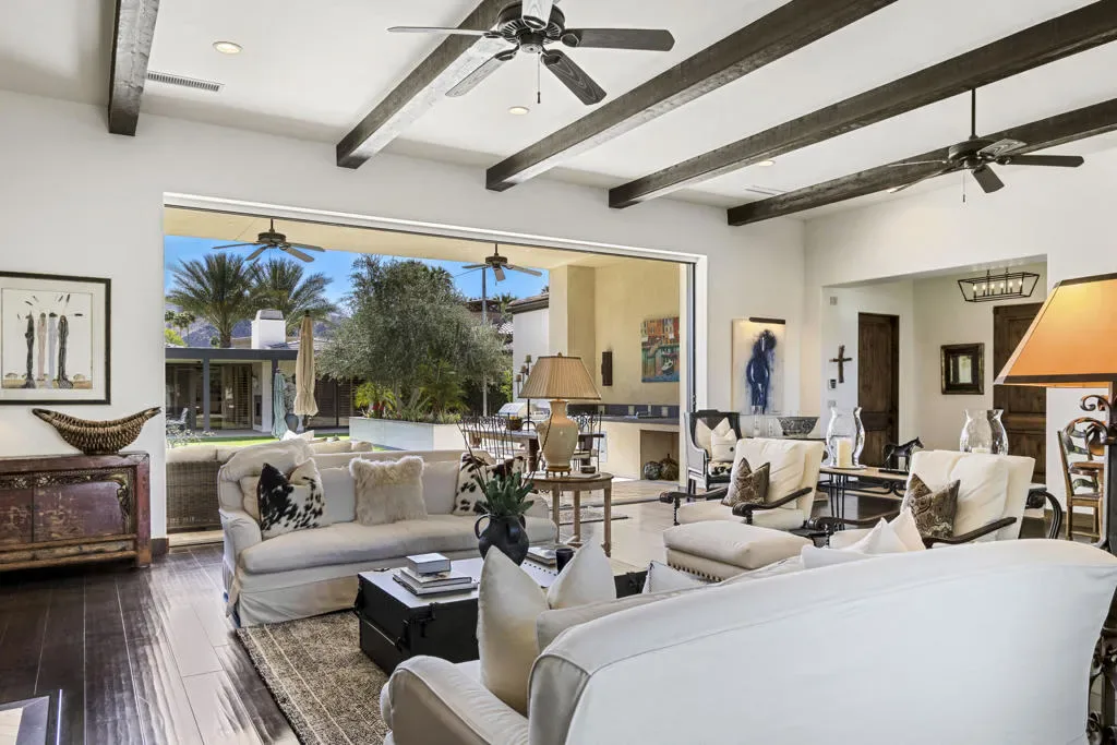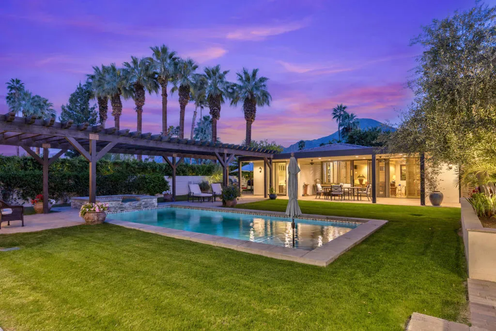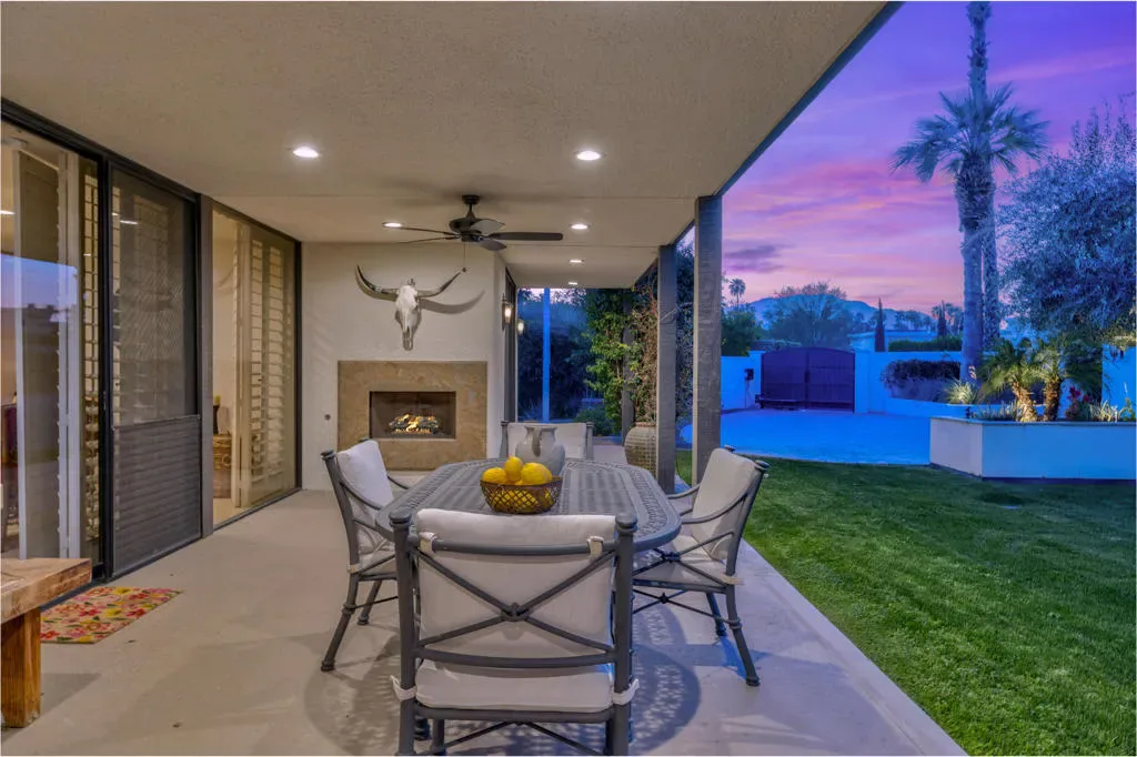 Offered for the first time, this exceptional custom estate in Indian Wells captures stunning south-facing views of Eisenhower Mountain from a premium cul-de-sac location in one of the city’s most desirable pockets. Thoughtfully designed around the property’s original casita, the sellers positioned the main residence to maximize views & create a seamless indoor-outdoor lifestyle centered around a private pool courtyard. Custom-built in 2020, the main residence features engineered hardwood flooring, double kitchen island in a Chef’s kitchen, expansive pocket sliders opening to the pool & beautiful Spanish tile details throughout. The main home offers 2 bedrooms & 2 baths with light-filled living spaces oriented to the dramatic mountain backdrop. Across the pool, the detached casita lives as its own residence with 2 bedrooms, 2 bathrooms and living space, with the second bedroom added in 2012. Multiple outdoor seating areas connect the two homes while maintaining privacy & flexibility for guests. Offered furnished per inventory. Enjoy the benefits of Indian Wells residency including golf & dining privileges, BNP Paribas Open tennis access & use of the Grand Hyatt Indian Wells spa & fitness center.