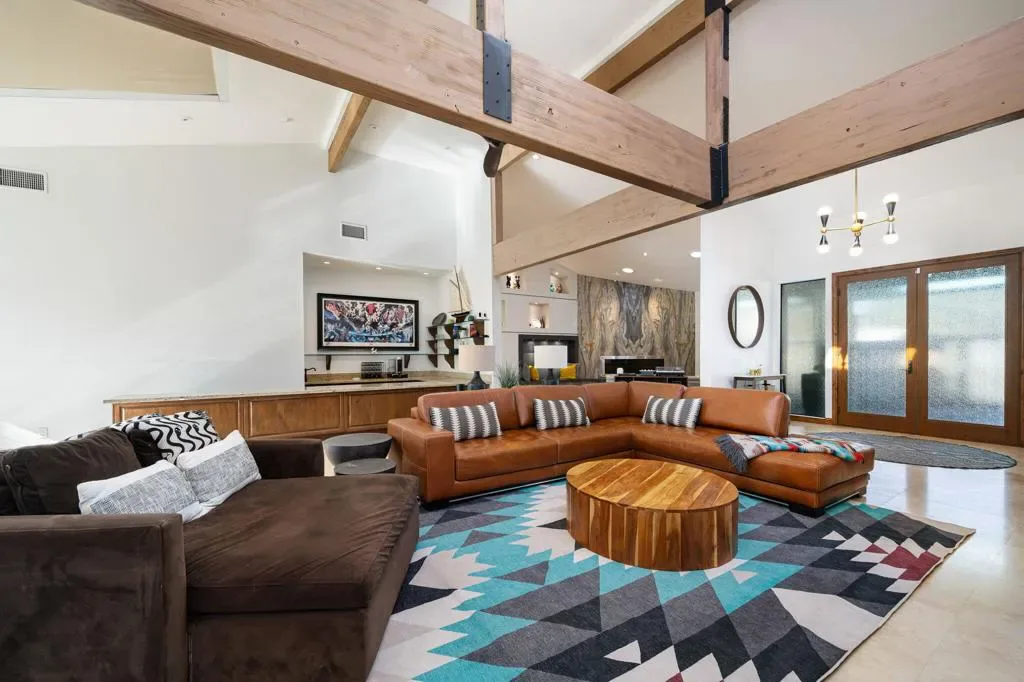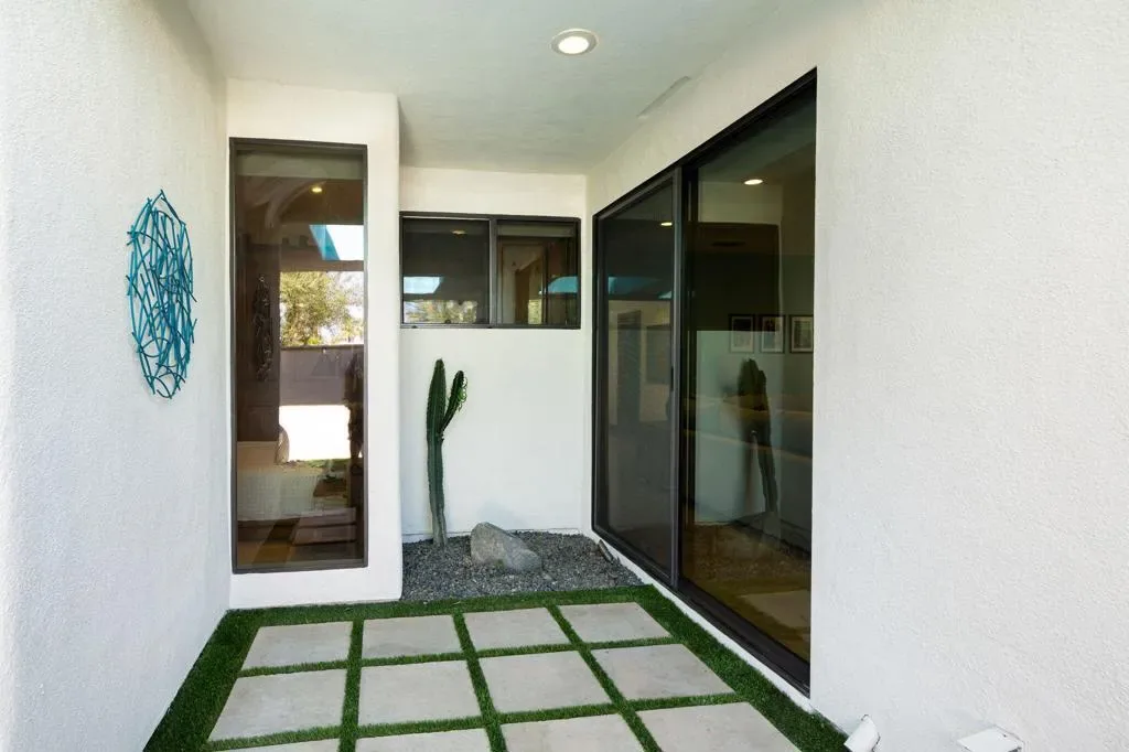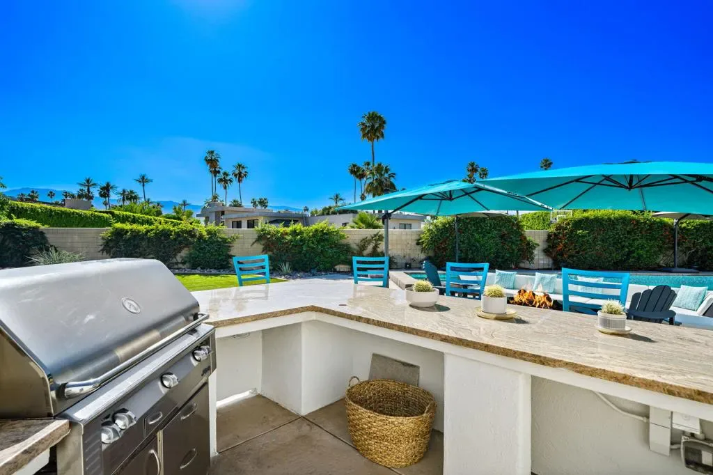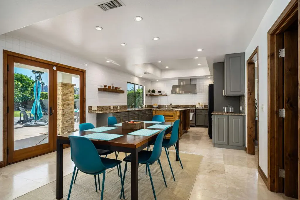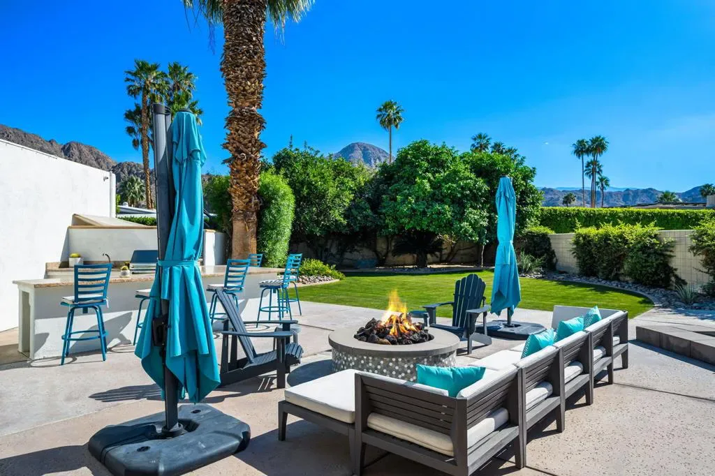 Indian Wells Luxury on .43 Acres | 84 Solar Panels | Lap Pool + Eisenhower Views. Desert modernism doesn’t get more authentic than this. Conceived by a celebrated local designer, Vicki McDermott in 1978, this single-story Indian Wells estate carries the architectural DNA of the Palm Springs design tradition. Tasteful contemporary updates make it feel completely at home in 2026. Timeless character, gracious proportions, and a one-of-a-kind provenance that simply cannot be replicated. At 5,323 square feet on nearly a half acre, this is the largest home and lot on the street. A genuinely custom offering at a scale that is increasingly rare in Indian Wells. The soaring great room, with ceilings over 22 feet high, two statement fireplaces, travertine floors, exposed beams, and solid alder wood doors and trim throughout deliver architectural character that no newer construction can touch. Five bedrooms offer flexible configurations, a primary suite and junior suite each with private en-suite baths, two additional bedrooms sharing a Jack-and-Jill bath, a dedicated guest bath off the playroom, and a private walled entry courtyard with a tranquil water feature. Multiple sets of sliding glass doors create seamless indoor-outdoor flow out to your private desert oasis with panoramic mountain views. Outside, the lap pool and spa anchor a true entertainer’s paradise. Built-in Alfresco professional grill, outdoor bar with sink, gas fire pit, full mister system, and smart exterior lighting throughout. The fully walled grounds are framed by mature privacy hedges, a towering Washingtonian palm, and a working citrus and fig orchard, tangelo, orange, and fig trees that produce generously in season. The 84-panel owned solar array means energy costs that are a fraction of comparable properties. A Tesla EV charger, epoxy-sealed garage floor, and full permitted natural gas system replacement round out an infrastructure story with zero deferred maintenance questions. No HOA. No gates. No monthly fees. Indian Wells prestige, walking distance to Eldorado Country Club, Indian Wells Country Club, and The Vintage Club, and minutes to the BNP Paribas Open and El Paseo. Whether you are here for tournament season or year-round desert living, this is complete California freedom on your own terms. Furnishings available separately. This home can be turn-key for the right buyer.