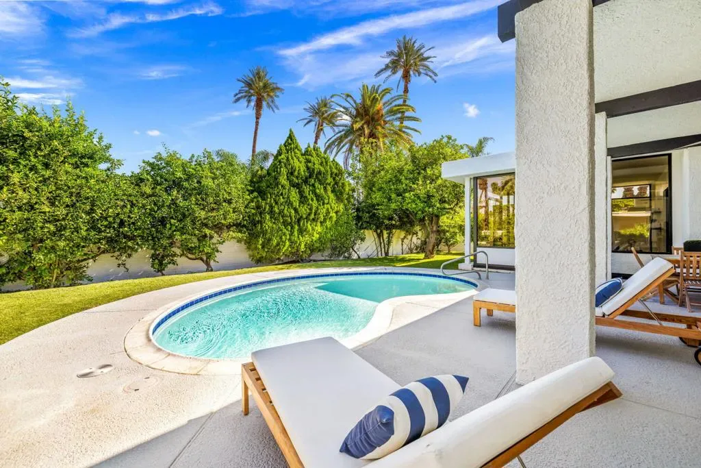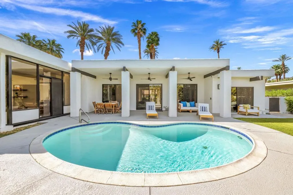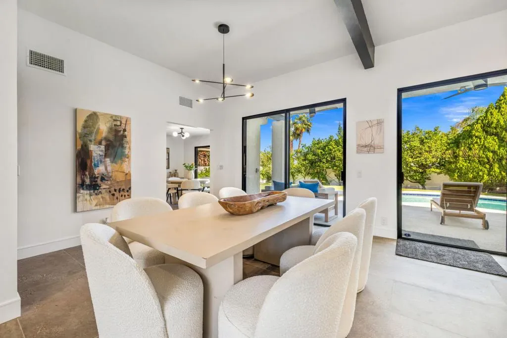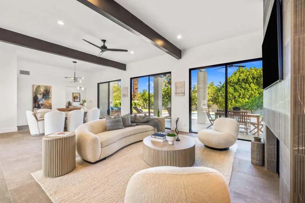 INDIAN WELLS: **OPEN THIS SATURDAY 4/18 2:00PM-3:30PM. COME SEE!!** Fully reimagined and thoughtfully redesigned, this modern Indian Wells residence delivers clean lines, open living, and seamless indoor-outdoor flow on an oversized lot in a prime south-of-111 location. New custom glass doors frame dramatic views of Eisenhower Mountain and flood the home with natural light, setting the tone for a bright, contemporary interior.The heart of the home is a beautifully updated kitchen featuring stone countertops, custom cabinetry, open shelving, and high-end appliances, all flowing into an expansive great room anchored by a striking modern fireplace and a sleek granite-wrapped bar with integrated wine fridge–perfect for entertaining.Three large sliding glass doors open to the backyard, enhancing the connection between interior and exterior living. The spacious primary suite offers direct access to a versatile outdoor atrium space–ideal as a gym, art studio, or potential fourth bedroom/casita.All bathrooms have been remodeled or expanded with a clean, modern aesthetic, complementing the home’s architectural character. Additional upgrades include new windows throughout, a new electrical panel with EV capability, and a reworked roof with foam and seal.Out back, enjoy a private, lush setting with a resurfaced saltwater pool, mature landscaping, and multiple seating areas–perfect for relaxing or entertaining.Located in non-gated Indian Wells, residents benefit from the coveted Indian Wells Resident Card, offering preferred access and discounts at the Indian Wells Golf Resort, tennis, dining, and more.Move-in ready, design-forward, and ideally located–this is exceptional value in Indian Wells.