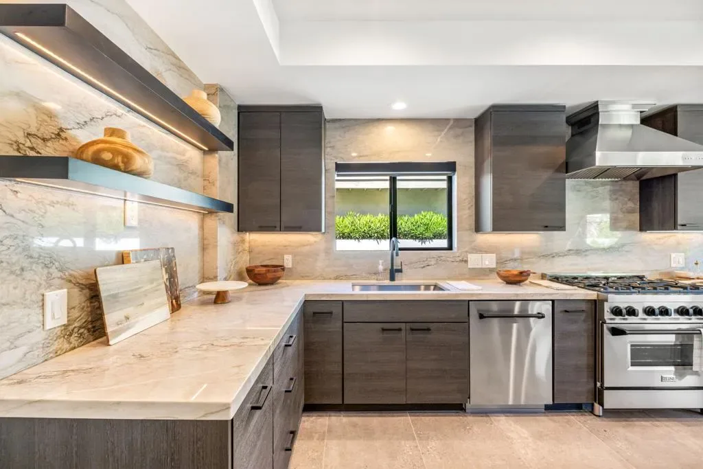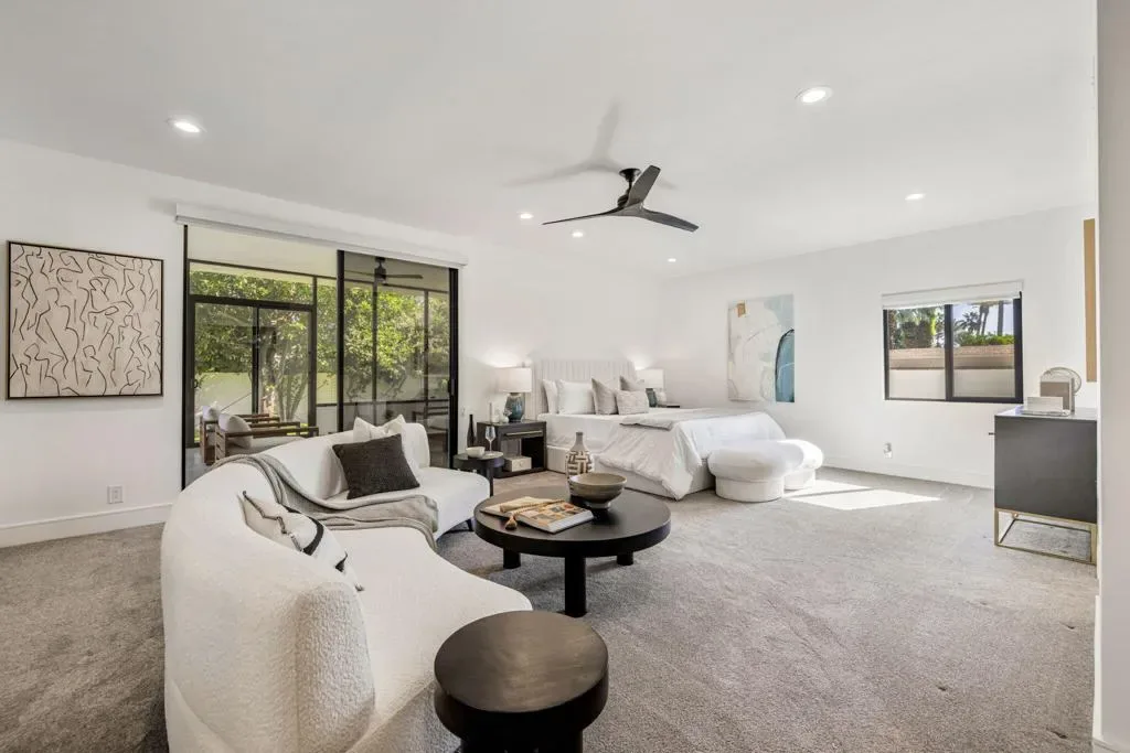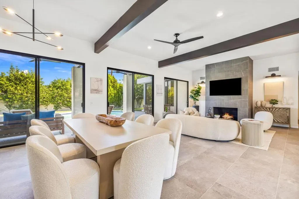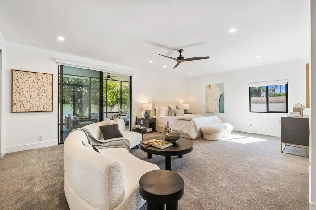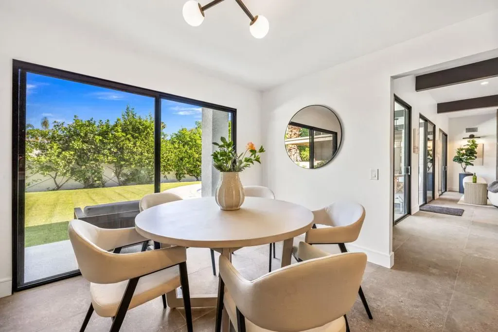 INDIAN WELLS: **OPEN THIS SATURDAY 4/18 2:00PM-3:30PM. COME SEE!!** Fully reimagined and thoughtfully redesigned, this modern Indian Wells residence delivers clean lines, open living, and seamless indoor-outdoor flow on an oversized lot in a prime south-of-111 location. New custom glass doors frame dramatic views of Eisenhower Mountain and flood the home with natural light, setting the tone for a bright, contemporary interior.The heart of the home is a beautifully updated kitchen featuring stone countertops, custom cabinetry, open shelving, and high-end appliances, all flowing into an expansive great room anchored by a striking modern fireplace and a sleek granite-wrapped bar with integrated wine fridge–perfect for entertaining.Three large sliding glass doors open to the backyard, enhancing the connection between interior and exterior living. The spacious primary suite offers direct access to a versatile outdoor atrium space–ideal as a gym, art studio, or potential fourth bedroom/casita.All bathrooms have been remodeled or expanded with a clean, modern aesthetic, complementing the home’s architectural character. Additional upgrades include new windows throughout, a new electrical panel with EV capability, and a reworked roof with foam and seal.Out back, enjoy a private, lush setting with a resurfaced saltwater pool, mature landscaping, and multiple seating areas–perfect for relaxing or entertaining.Located in non-gated Indian Wells, residents benefit from the coveted Indian Wells Resident Card, offering preferred access and discounts at the Indian Wells Golf Resort, tennis, dining, and more.Move-in ready, design-forward, and ideally located–this is exceptional value in Indian Wells.