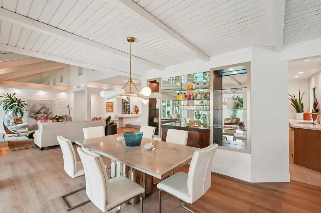 Architectural Icon Reimagined — Steve Chase Desert Masterpiece Under $2M! A timeless fusion of mid-century architecture & modern sophistication, this Steve Chase re-designed Indian Wells residence represents a rare opportunity to own an authentic piece of desert design history. Originally built in 1960 & meticulously restored, the home has been thoughtfully updated to honor Chase’s visionary aesthetic while introducing the comforts & craftsmanship of contemporary living. From the moment you enter the gated courtyard, you’re greeted by lush landscaping & a sense of seclusion that sets the tone for the elegance within. Double glass doors open to a dramatic foyer & expansive great room where soaring ceilings, walls of glass, and Chase’s signature details blend to create a bright, airy atmosphere. The formal living & dining rooms embrace effortless indoor-outdoor flow, connecting seamlessly to the resort-style backyard. Step outside to your private oasis featuring a sparkling pool, tranquil fountain, & alumawood patio cover–all framed by mountain views & desert skies. Remote-controlled awning, built-in BBQ, & outdoor shower complete the experience – the perfect space for entertaining or unwinding in total privacy. The chef’s kitchen is both functional & beautiful, w/ high-end SS appliances, custom cabinetry, quartz countertops & a large center island. A cozy breakfast nook invites relaxed mornings, while just beyond, a newly created bonus room expands the possibilities–perfect as a second primary suite, casita, family room, or creative studio w/direct backyard access. The reimagined primary suite serves as a tranquil retreat, enhanced by custom Chase cabinetry, dual walk-in closets & a spa-inspired bath with a deep soaking tub, dual vanities & a walk-in shower. Throughout the home, every detail has been curated for comfort & style: elegant tile flooring, plantation shutters, designer lighting & a whole-house water system. Towering privacy walls ensure peace and quiet, while vibrant citrus & jasmine trees perfume the air. Ideally located just 2.3 miles from El Paseo’s luxury shopping & dining & 2.7 miles from the world-renowned Indian Wells Tennis Garden, this home also includes exclusive resident privileges–discounts at four luxury resorts and the acclaimed Indian Wells Golf Resort. More than a home, this is a statement of architectural artistry–a Steve Chase masterpiece that celebrates history, design, & desert serenity in one extraordinary property.