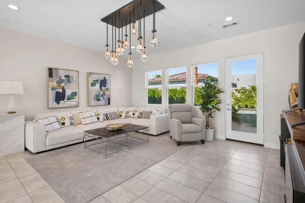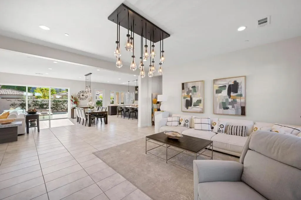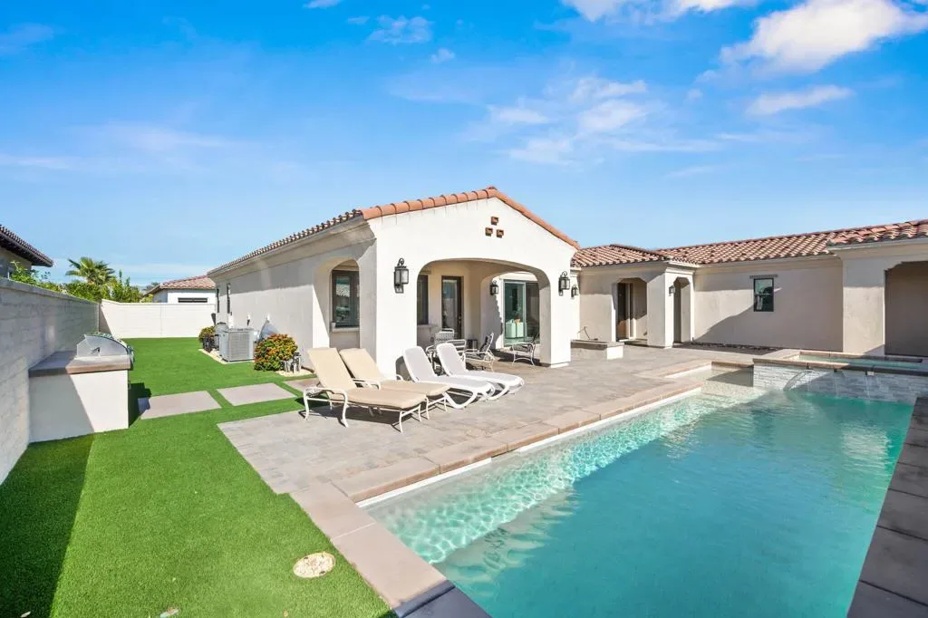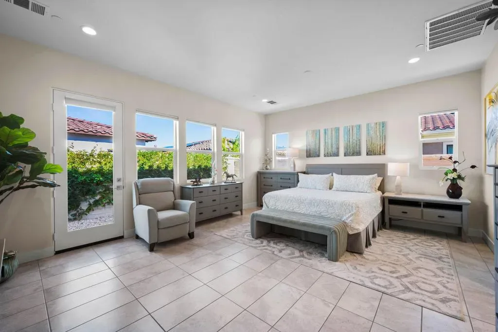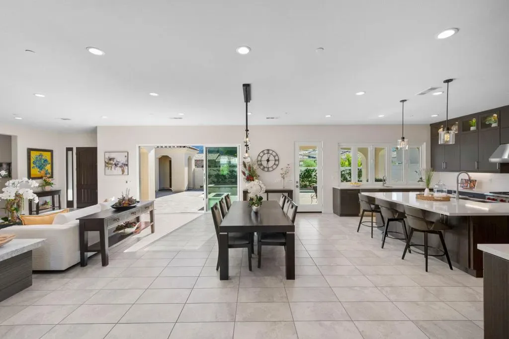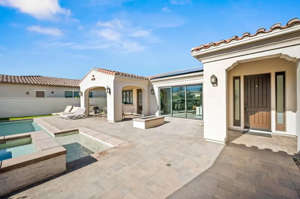 **Welcome to The Province**, an exclusive gated enclave in the heart of Indian Wells, where modern desert living is elevated to its finest expression. This stunning **3-bedroom, 4-bathroom residence** showcases sophisticated design, premium finishes, and thoughtful craftsmanship throughout.Step inside to a **spacious open-concept floor plan** designed for effortless entertaining. The expansive great room flows seamlessly into the dining and living areas, enhanced by a stylish **wet bar with direct outdoor access**, creating a true indoor-outdoor lifestyle.The **gourmet kitchen** is a showpiece, featuring quartz countertops with designer tile backsplash, an oversized quartz island accented by custom pendant lighting, abundant cabinetry, and premium stainless steel appliances–including a **Wolf six-burner range, Sub-Zero refrigerator, Wine Cooler, Cove dishwashers**, walk-in pantry, and under-cabinet lighting–perfect for both the culinary enthusiast and the entertainer.The **primary suite** offers a private sanctuary with direct outdoor access, generous custom cabinetry, and a spa-inspired bath complete with a quartz double vanity, smart bidet, expansive tiled shower, and a luxurious soaking tub designed for ultimate relaxation. A custom-designed walk-in closet adds both elegance and functionality.An additional **flex room ** provides versatility for a home office, media room, or den. Two beautifully appointed guest bedrooms each feature their own full bathrooms, offering comfort and privacy for family and guests alike.Professionally decorated with a modern, refined aesthetic, the home reflects exceptional pride of ownership throughout.Outside, your **private south-facing desert oasis** awaits. Enjoy year-round sunshine with a sparkling **saltwater pool and spa**, cascading waterfall, fire pit, and **breathtaking mountain views**. A custom built-in BBQ creates the perfect setting for alfresco dining and entertaining under the stars.Additional upgrades include **owned solar panels, custom tile flooring, tankless water heater, dual-zone HVAC**, and an oversized garage with extensive storage.This exceptional residence offers the very best of **luxury desert living** with incredible south views of the mountains. As an Indian Wells resident, enjoy exclusive discounts on world-class golf and dining.A must-see opportunity in one of the desert’s most coveted communities.