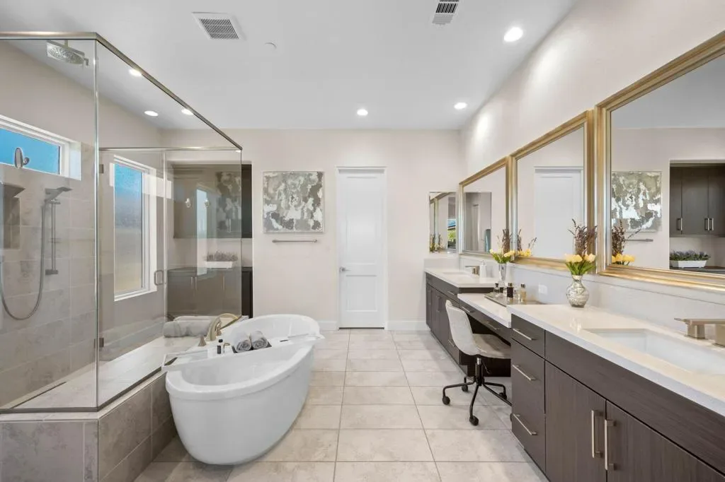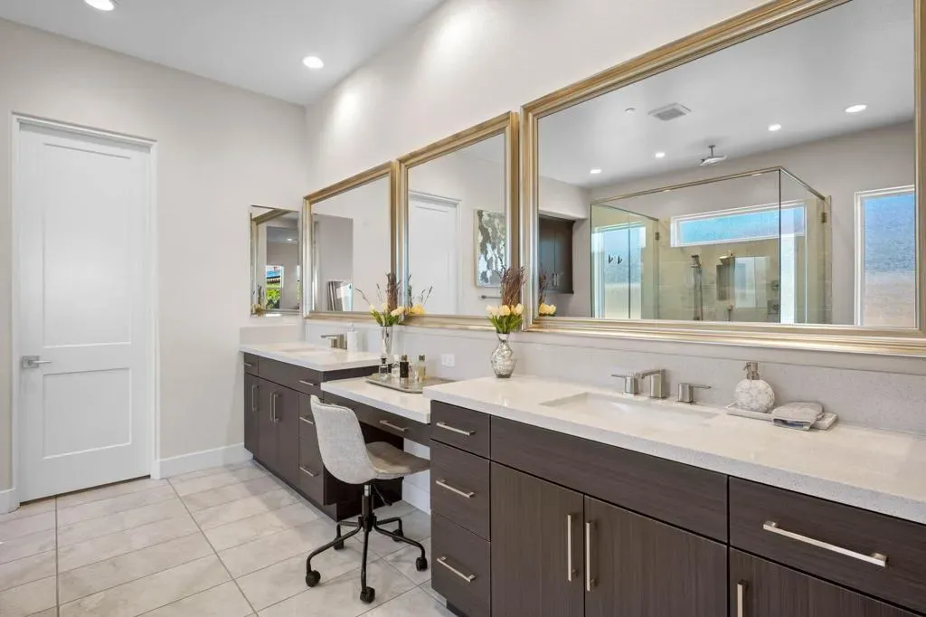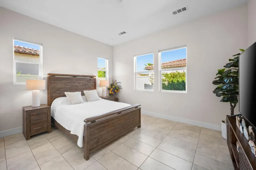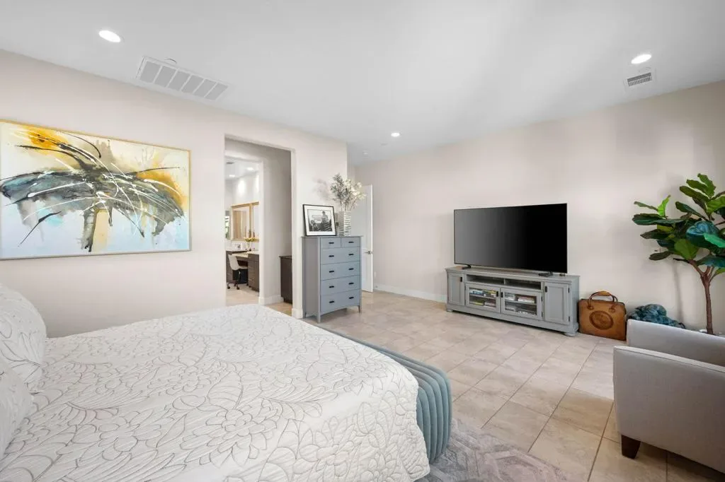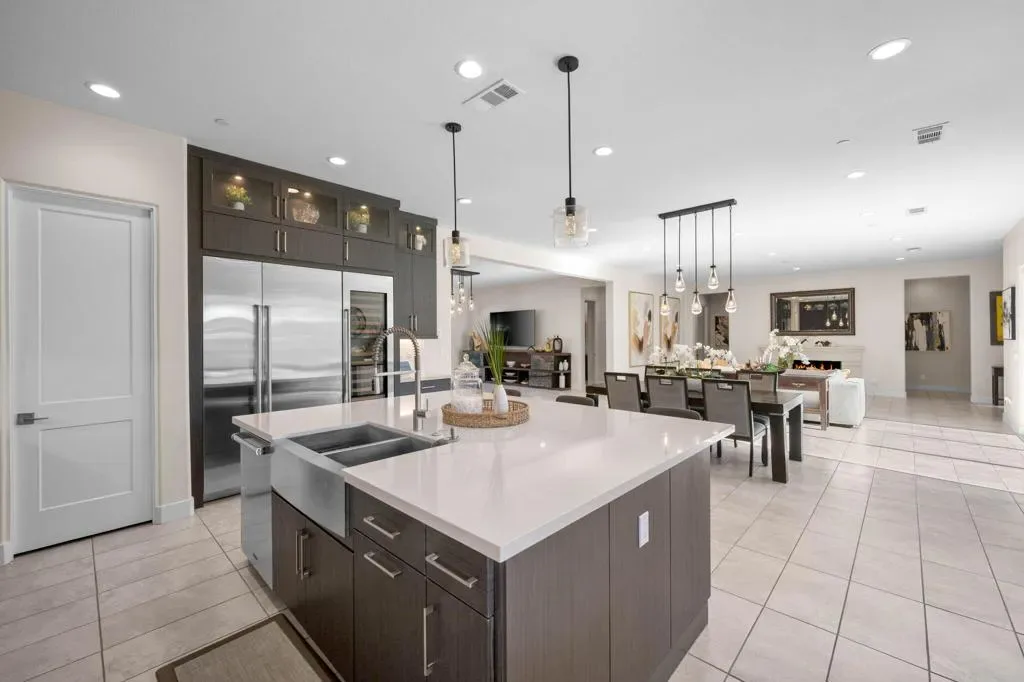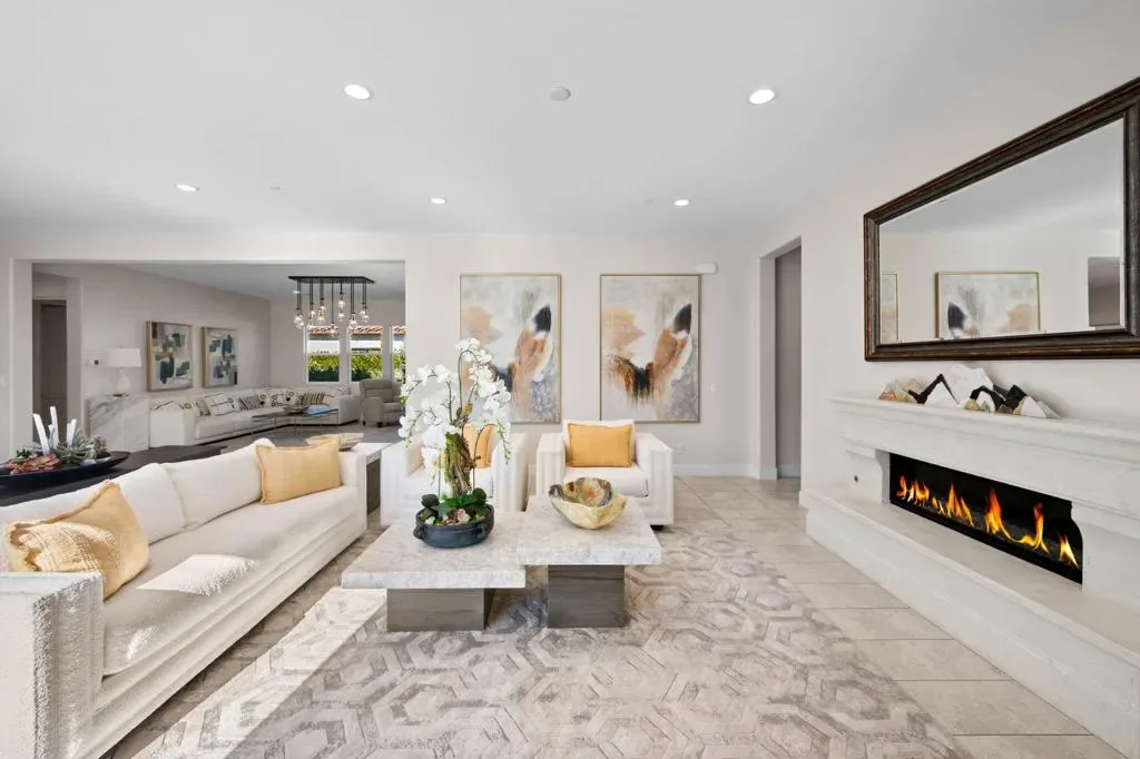 **Welcome to The Province**, an exclusive gated enclave in the heart of Indian Wells, where modern desert living is elevated to its finest expression. This stunning **3-bedroom, 4-bathroom residence** showcases sophisticated design, premium finishes, and thoughtful craftsmanship throughout.Step inside to a **spacious open-concept floor plan** designed for effortless entertaining. The expansive great room flows seamlessly into the dining and living areas, enhanced by a stylish **wet bar with direct outdoor access**, creating a true indoor-outdoor lifestyle.The **gourmet kitchen** is a showpiece, featuring quartz countertops with designer tile backsplash, an oversized quartz island accented by custom pendant lighting, abundant cabinetry, and premium stainless steel appliances–including a **Wolf six-burner range, Sub-Zero refrigerator, Wine Cooler, Cove dishwashers**, walk-in pantry, and under-cabinet lighting–perfect for both the culinary enthusiast and the entertainer.The **primary suite** offers a private sanctuary with direct outdoor access, generous custom cabinetry, and a spa-inspired bath complete with a quartz double vanity, smart bidet, expansive tiled shower, and a luxurious soaking tub designed for ultimate relaxation. A custom-designed walk-in closet adds both elegance and functionality.An additional **flex room ** provides versatility for a home office, media room, or den. Two beautifully appointed guest bedrooms each feature their own full bathrooms, offering comfort and privacy for family and guests alike.Professionally decorated with a modern, refined aesthetic, the home reflects exceptional pride of ownership throughout.Outside, your **private south-facing desert oasis** awaits. Enjoy year-round sunshine with a sparkling **saltwater pool and spa**, cascading waterfall, fire pit, and **breathtaking mountain views**. A custom built-in BBQ creates the perfect setting for alfresco dining and entertaining under the stars.Additional upgrades include **owned solar panels, custom tile flooring, tankless water heater, dual-zone HVAC**, and an oversized garage with extensive storage.This exceptional residence offers the very best of **luxury desert living** with incredible south views of the mountains. As an Indian Wells resident, enjoy exclusive discounts on world-class golf and dining.A must-see opportunity in one of the desert’s most coveted communities.