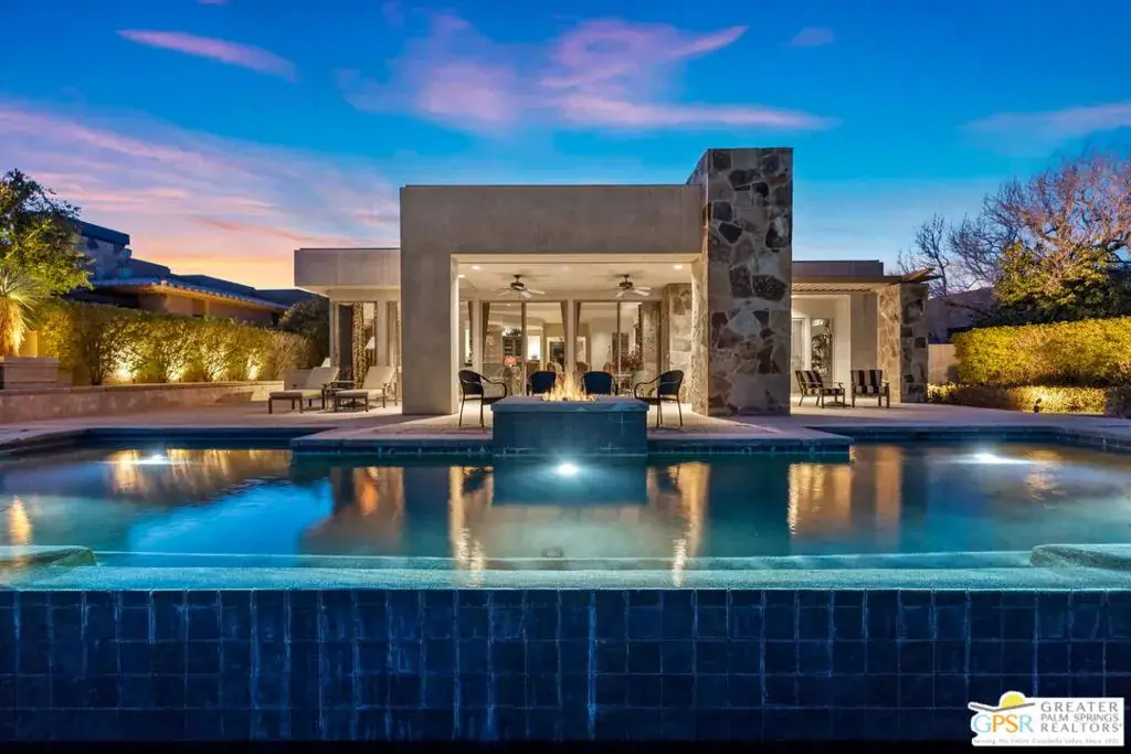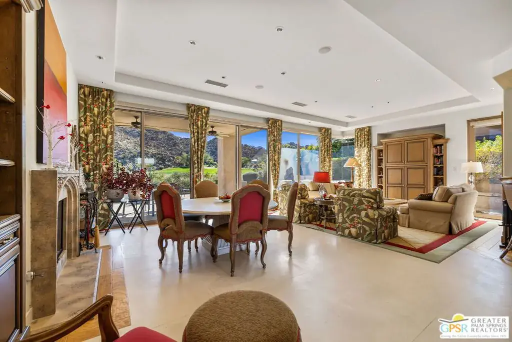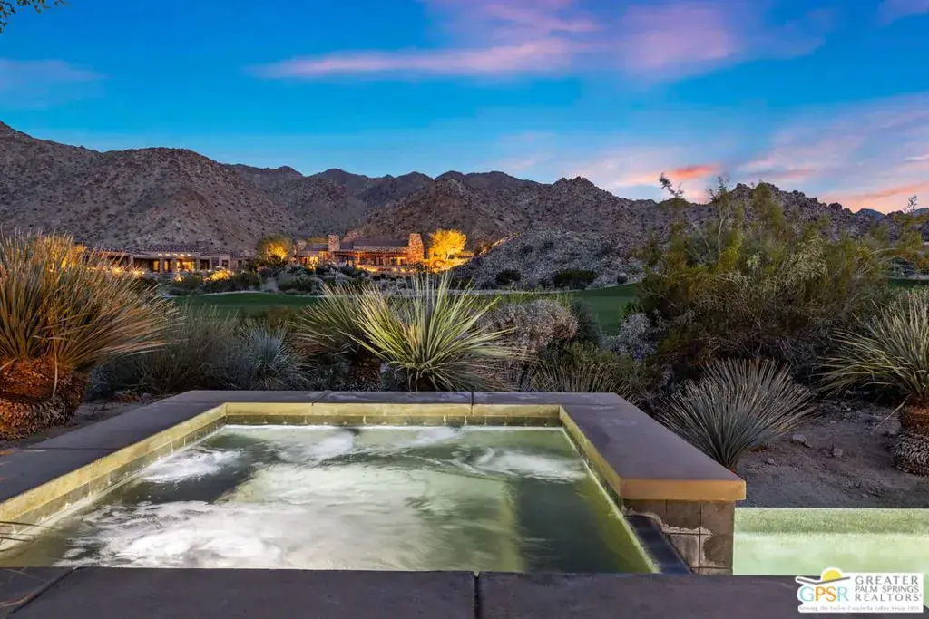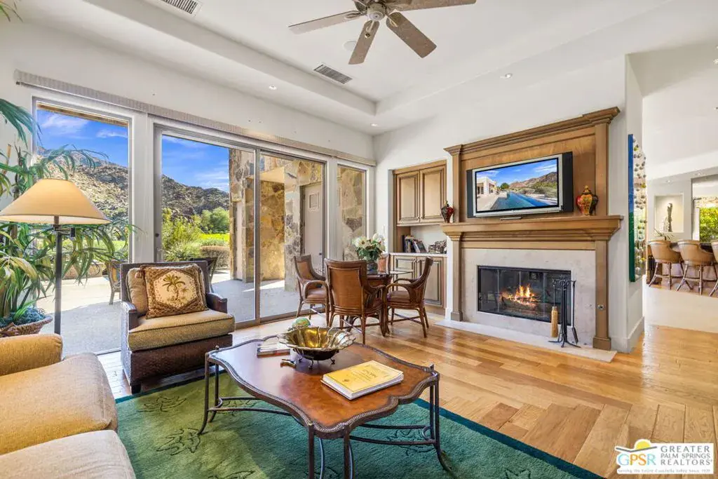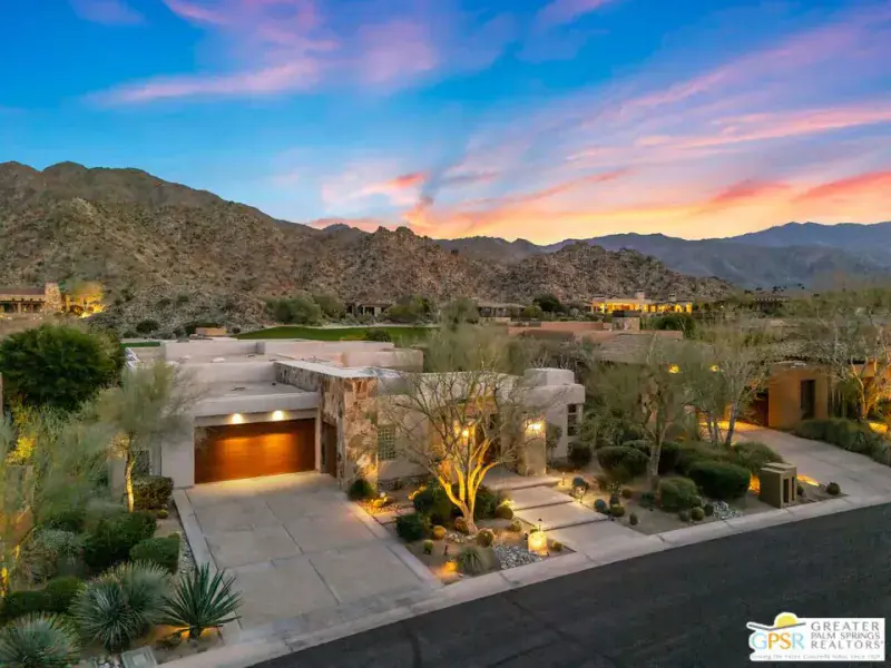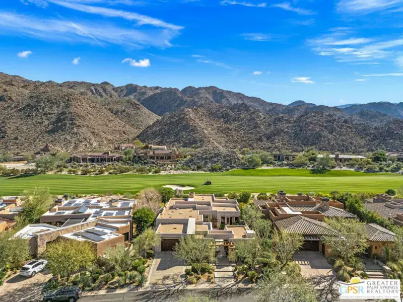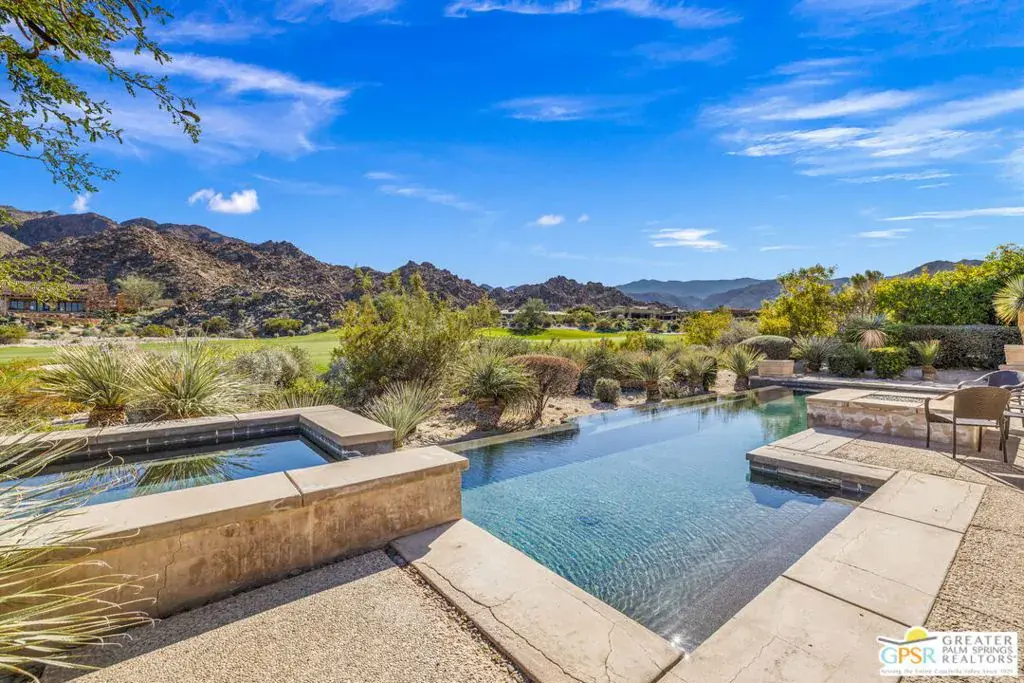 Set within the Indian Wells enclave of The Reserve Club, this desert contemporary residence overlooks the 15th fairway and captures sweeping south-facing mountain views from a setting prized for privacy, architecture, and natural beauty. Offering a highly flexible layout with multiple ensuite accommodations, this home is ideally suited for entertaining, hosting guests, or multi-generational living. Arrival is through a dramatic front courtyard framed by a private water fountain and gas fireplace – an inviting outdoor living space that also serves as the organizational heart of the home. Several of the private suites connect directly or indirectly to this courtyard, creating a true resort-style, casita-inspired experience. Inside the main residence, a rotunda entry opens to expansive living spaces with tall ceilings and floor-to-ceiling glass that frame pool, fairway, and mountain views. The formal living room features a gas fireplace, custom built-ins, and an adjacent wet bar, while a separate south-facing family room offers equally impressive views and its own fireplace. The gourmet kitchen is centrally positioned with generous island and breakfast bar seating, and provides convenient access to a built-in barbecue just outside – ideal for seamless indoor/outdoor entertaining. The Primary Ensuite is privately located and offers tall ceilings, wood flooring, and a well-appointed bath with dual private sinks, soaking tub, walk-in shower, and a generous custom walk-in closet. Junior Ensuite Two includes a private bath and opens directly to the courtyard. Junior Ensuite Three also features its own bath and enjoys courtyard access via a nearby hallway. Junior Ensuite Four is a standout casita-style suite with a separate exterior entrance and private bath perfect for guests seeking maximum privacy. The Den with private bath, direct access to the golf cart garage, and courtyard entry offers additional flexibility and can easily function as a fifth ensuite bedroom if desired. The south-facing backyard is a private retreat with a pool, elevated in-ground spa, gas firepit, and dramatic mountain backdrop – perfectly oriented for all-day sun and sunset views. Located in Indian Wells and just moments from the private clubhouse, life at The Reserve Club includes world-class golf, dining, fitness and wellness facilities, tennis and pickleball, and miles of scenic trails – all within a community defined by privacy, elegance, and a true sense of place. A bold architectural offering with exceptional flexibility, views, and value ready for its next chapter.