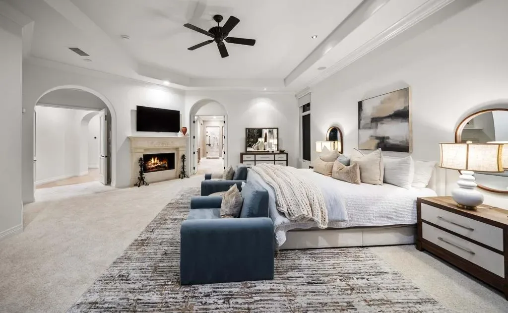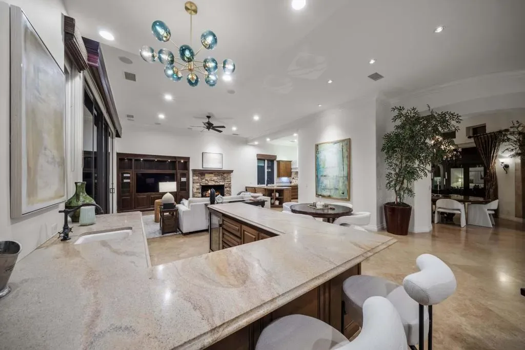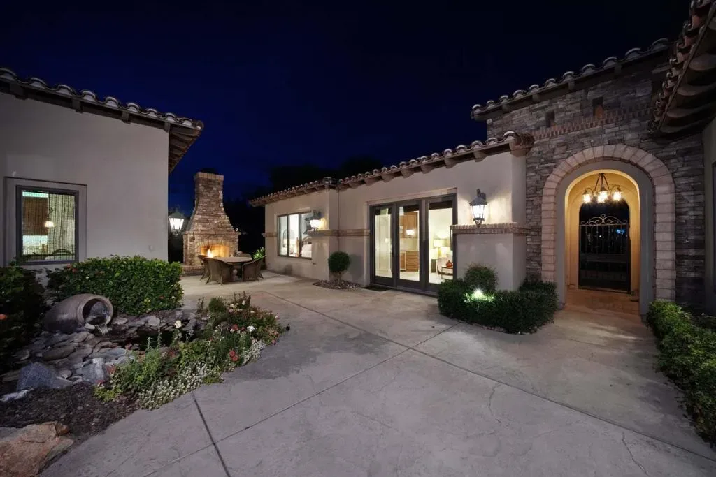 This stunning Tuscan-style estate at Toscana Country Club is perfectly situated on an expansive nearly 1/2-acre homesite between the 2nd and 3rd holes of the Jack Nicklaus Signature South Course, offering a coveted southwest-facing orientation. Enjoy breathtaking double fairway and mountain views, with spectacular sunsets creating a picturesque backdrop from the home’s main living areas and outdoor spaces.Designed for both comfort and scale, this residence features a spacious floorplan complemented by a rare 4-car garage. Recent upgrades include five new HVAC units and new water heaters, ensuring modern efficiency and year-round comfort, while owned solar adds long-term energy savings. The generous outdoor living areas are ideal for entertaining or relaxing, with ample space to take in the sweeping golf course vistas and serene desert surroundings. Whether hosting guests or enjoying a quiet evening, the combination of privacy, views, and lot size makes this property truly exceptional. With its prime location, expansive homesite, and thoughtful upgrades, this Tuscan-inspired home offers a unique opportunity to experience the best of luxury desert living at Toscana Country Club.