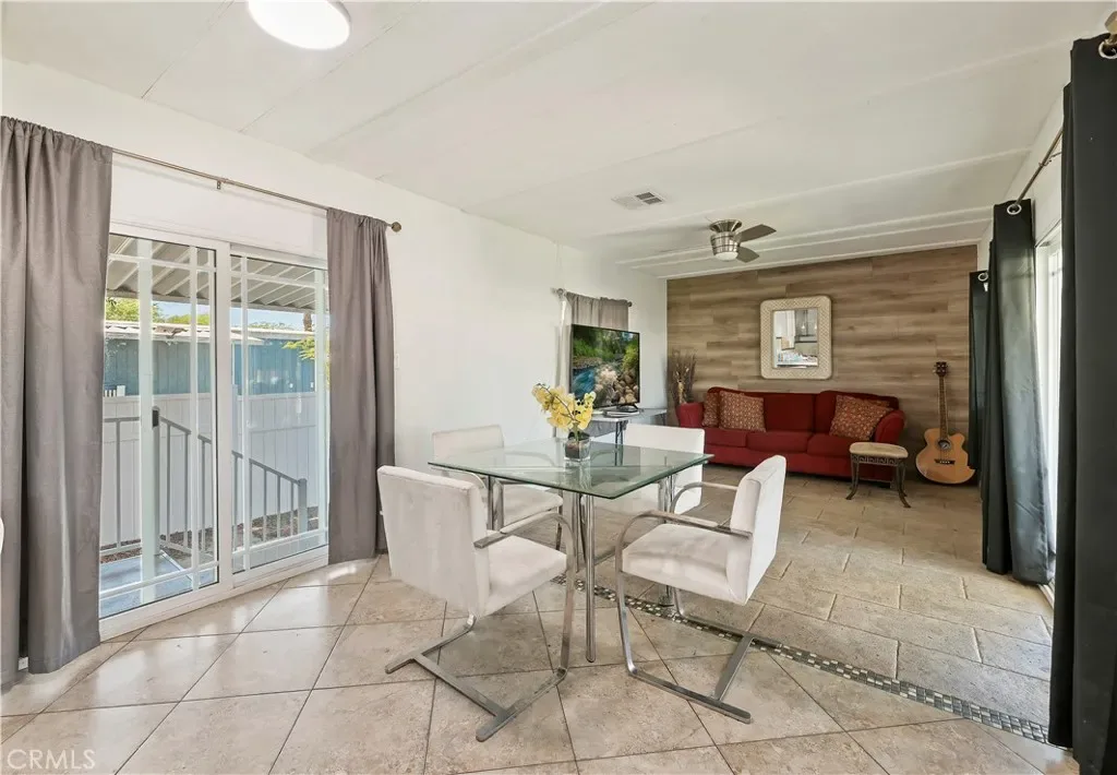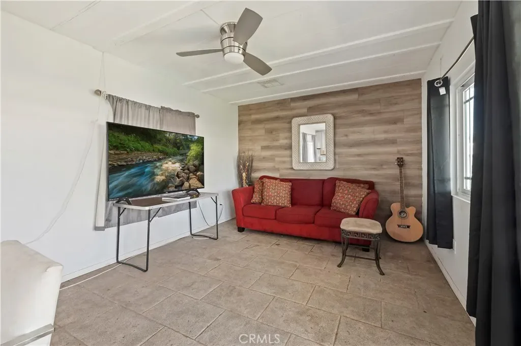 Welcome to this 3-bedroom, 2-bathroom manufactured home in Las Palmas de la Quinta. The home features a kitchen with cabinets, countertops, and tile flooring, providing a practical space for everyday meals. The primary bedroom includes a private bathroom, while the additional bedrooms offer comfortable space and natural light. Sliding doors provide additional natural light and lead to a patio, offering an inviting space to enjoy the afternoon.