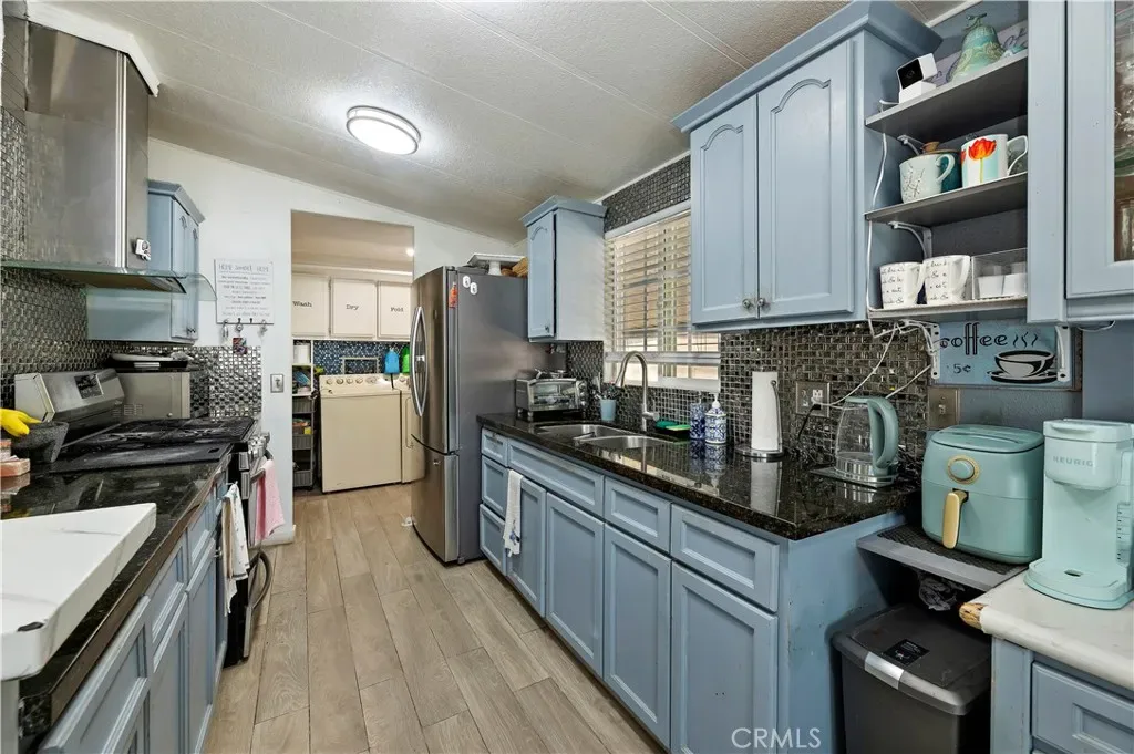 Located in the gated, all-ages community of Las Palmas de la Quinta in Indio, this 3-bedroom, 2-bathroom home offers a comfortable layout and exceptional value in a central, convenient location. Step inside the spacious kitchen, featuring ample cabinets, a sleek black backsplash, and beautiful countertops that inspire your culinary creativity.