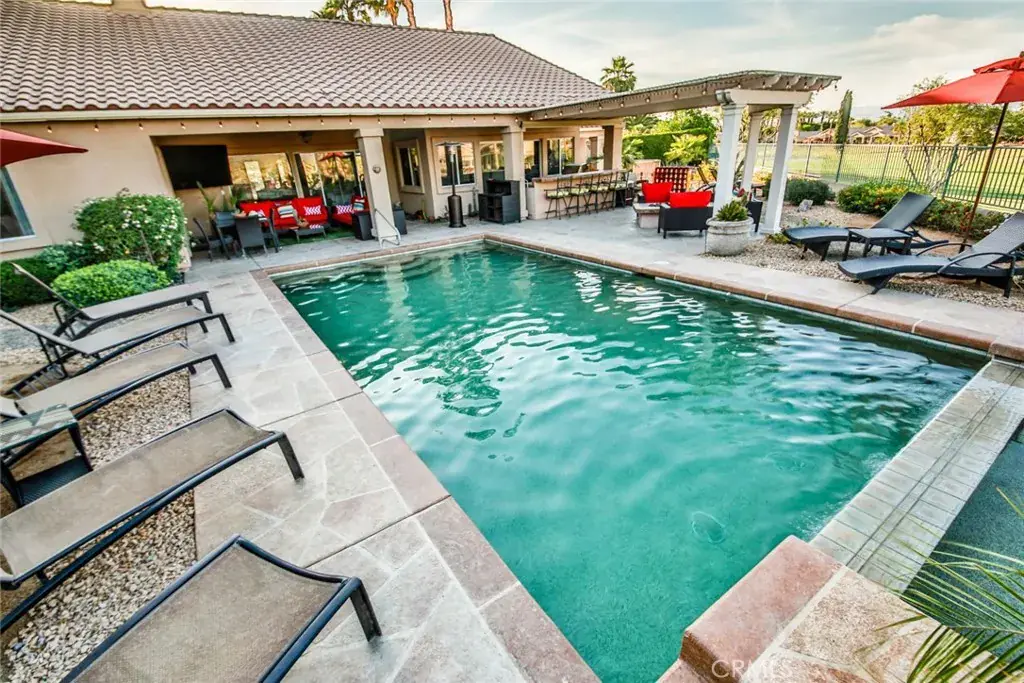 The House consists of 4 bedroom 3.5 bath house is nearly 3,500 square feet which includes the game room in the air conditioned garage, all on one level and on almost a half acre of space so plenty of areas to relax and spread out. It’s also very close to Coachella and the festivals and not too far away from downtown Palm Springs and all the high end restaurants.