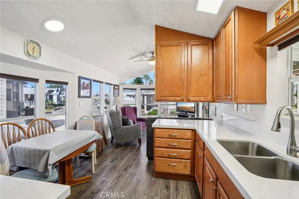 Your perfect entertainment spot. This unit is on a large private lot with a block wall behind, but not on Avenue 49, so no road noise. The deck is also huge. Inside you’ll find the majority of the coach was renovated. The bathroom was updated, all the floors were replaced, new electrical & plumbing, and a new dream kitchen. The cabinets are so convenient with soft close and pull out drawers for easy reach. Yes, the countertop is quartz. Check out the coffee/breakfast bar. Useful and stylish. This is a very desirable location in an equally desirable park. Tons of activities to get involved in. There is pickleball, shuffleboard, water sports, card games, billiards room, quilting, concerts at the pool, guided tours to local and regional sites, competitive annual games and so much more. Act now and winter in style.