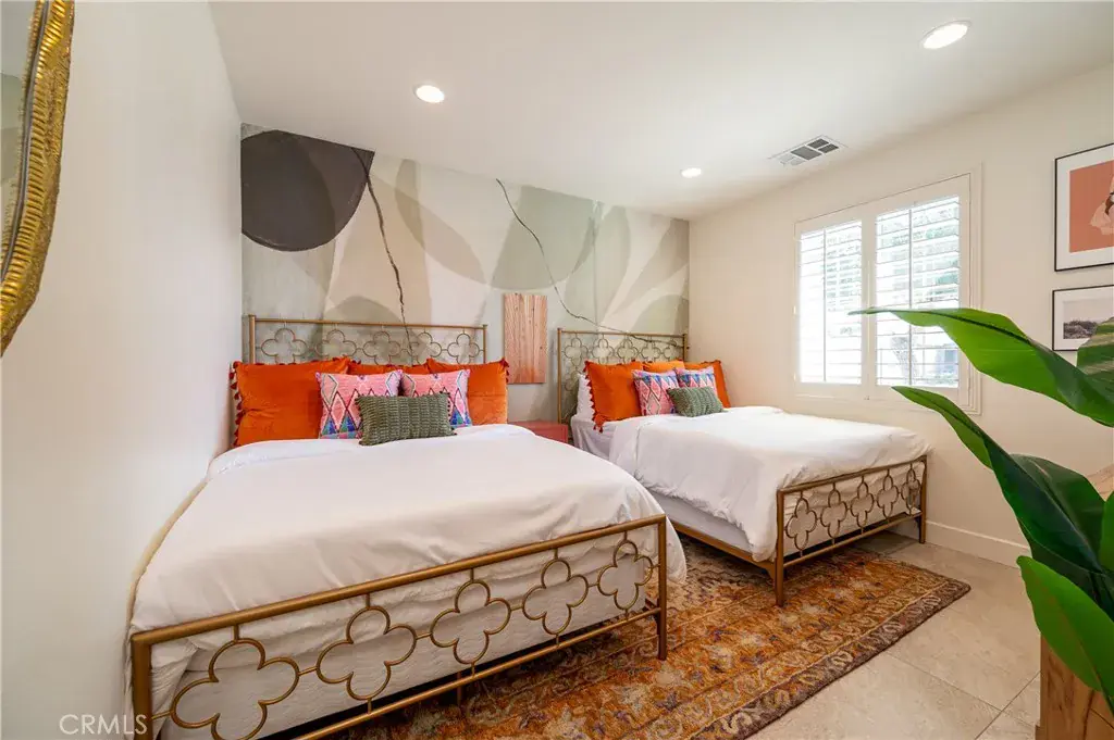 The main residence features four well-appointed bedrooms, including a thoughtfully converted bonus room. An attached private casita offers a versatile fifth bedroom option and is complete with its own kitchenette, washer and dryer, full bathroom, and private entrance—ideal for multigenerational living, hosting guests, or generating additional rental income.