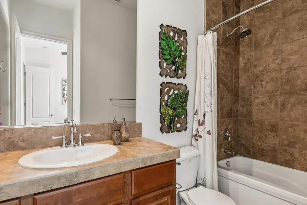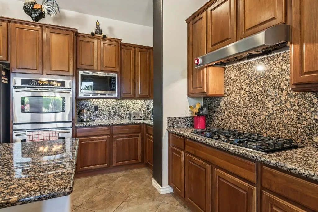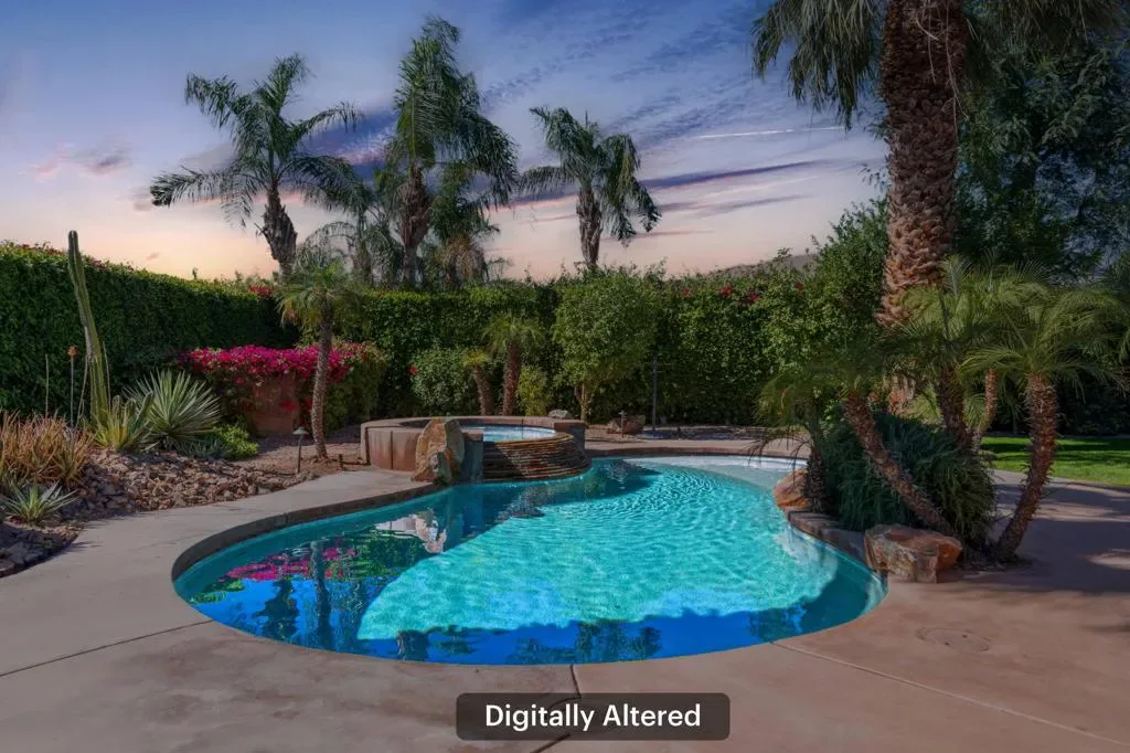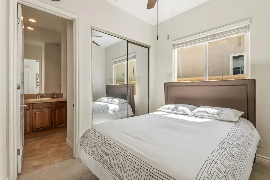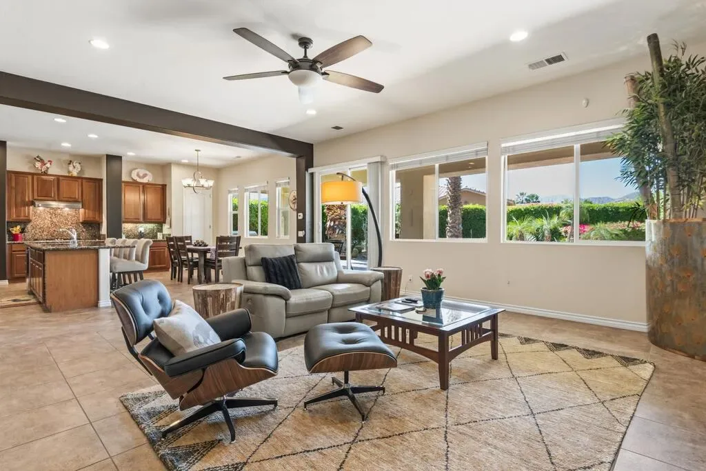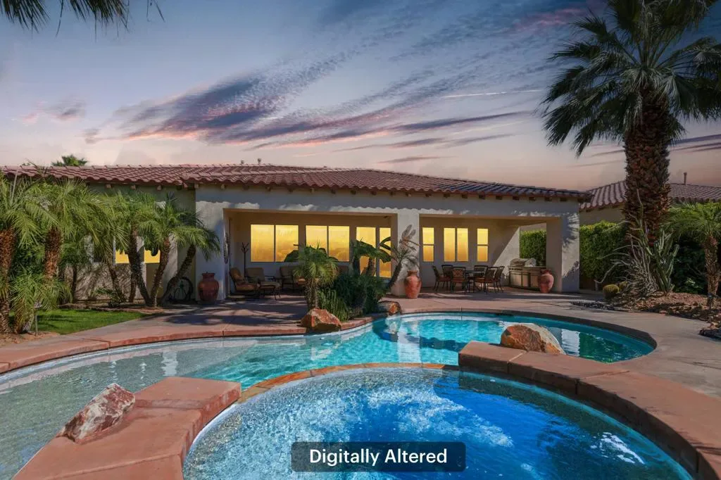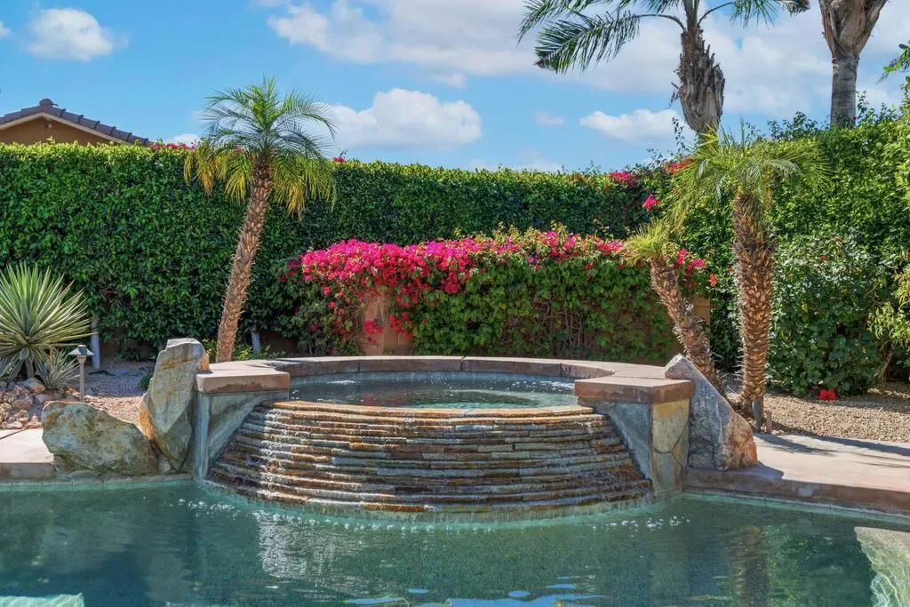 Gorgeous home in the highly desirable gated community of The Bridge at Jefferson, situated on one of the largest lots in the neighborhood with beautiful mountain views. Enter through an artistic metal gate into a private courtyard featuring a tranquil water feature. Double entry doors welcome you into a spacious open floor plan designed for both comfort and entertaining. The backyard is a private desert oasis with lush landscaping, a large saltwater pool and spa, and an expansive covered patio–perfect for outdoor gatherings or relaxing in the shade. The gourmet kitchen features stainless steel appliances, slab granite countertops, rich cherry cabinetry, and ample space for preparing memorable meals. Guests will appreciate the attached casita with private entrance and direct access to the home, offering comfort and privacy. The spacious primary suite serves as a peaceful retreat with a walk-in closet and spa-style bath. The finished two-car garage includes epoxy flooring, mini-split A/C, and a 240V outlet. Additional upgrades include a variable-speed pool pump, new chlorine generator, reverse osmosis system, whole-house water softener, fiber ethernet, landscape lighting, and ceiling fans throughout (see list attached to the MLS). Ideally located near world-class golf, hiking, shopping, and dining, and just minutes from the Indian Wells Tennis Garden, PGA events, and the Coachella and Stagecoach festivals, this beautifully maintained home offers the best of desert living.