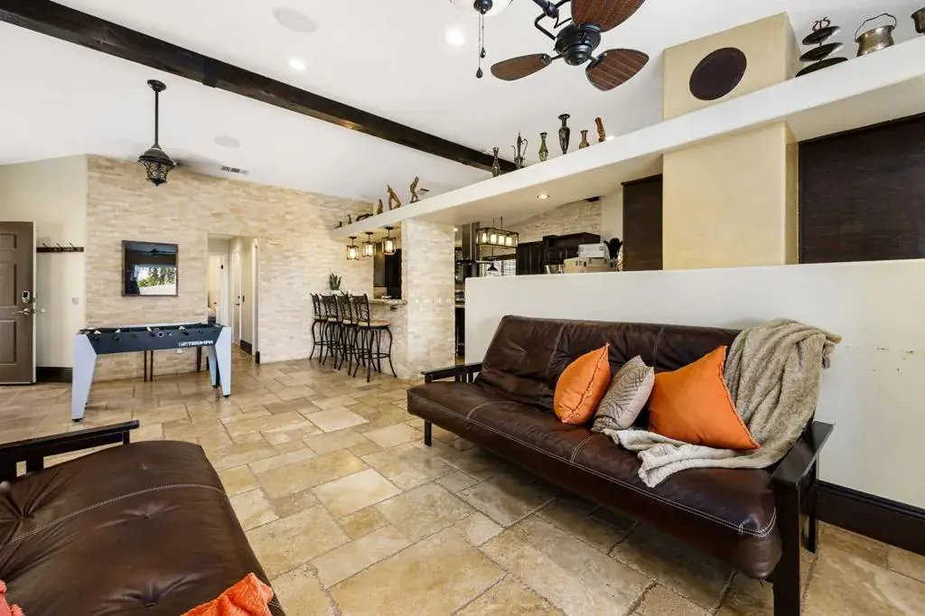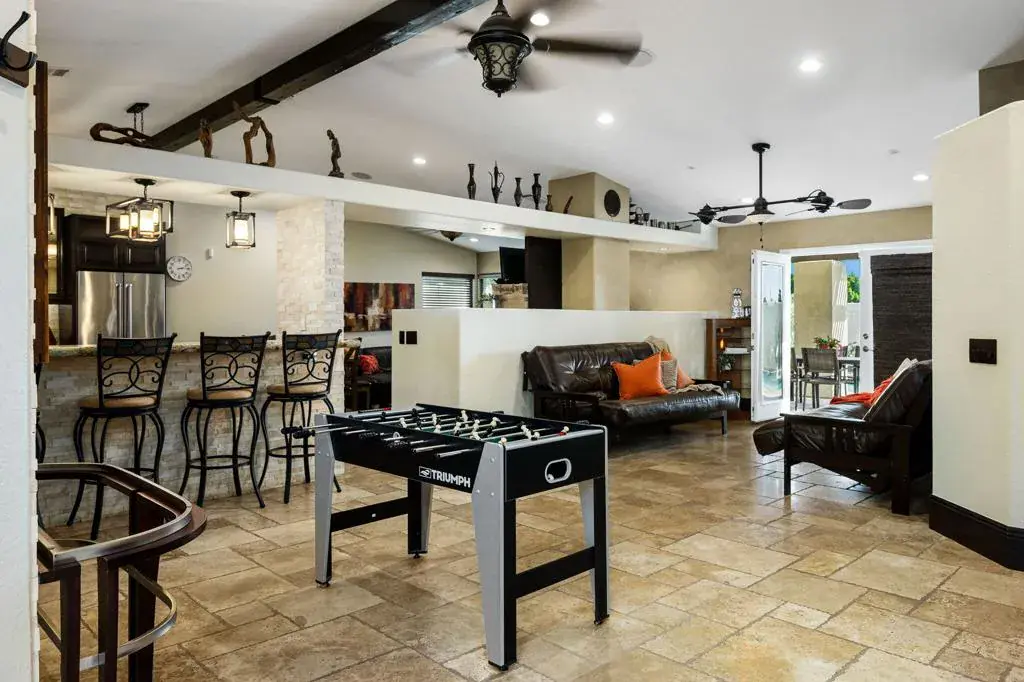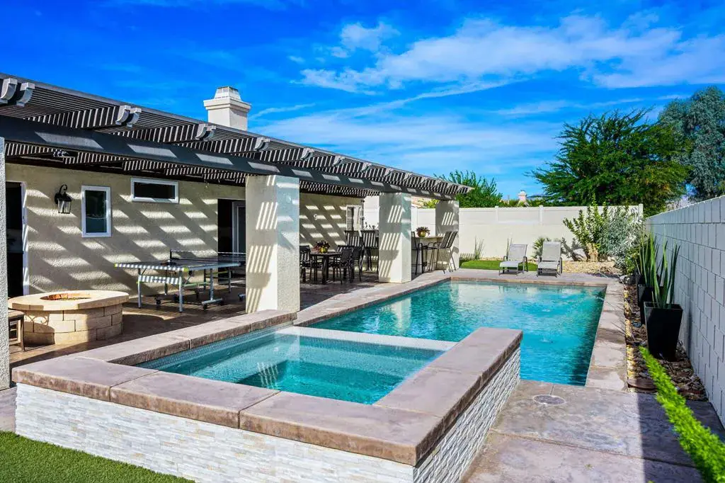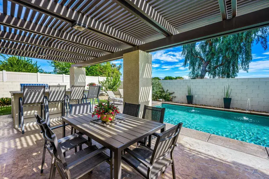 Nestled within the desirable Del Rey Palms community of Indio, and offering the added privacy of no rear neighbors, this beautifully upgraded residence offers a rare combination of refined interior design, resort-style outdoor living, and exceptional functionality. Thoughtfully enhanced throughout, the home immediately impresses with its expansive Custom Pool, complete with a BBQ Island, Fire Pit, and a low-maintenance Alumawood Patio Cover featuring ample evening Lighting–creating the perfect setting for outdoor entertaining year-round. Lush, always-green high-quality Artificial Turf complements the space, while 2 oversized side yards provide secure, Gated Storage for RVs, trailers, or ATVs, a truly uncommon and valuable feature.Inside, the executive chef-designed kitchen serves as the heart of the home, showcasing Stainless Steel Appliances, a Counter-Flush Refrigerator, a 6-burner Gas Cooktop with an island range Hood, dual glass-door Beverage Center Coolers, and an expansive center island paired with a separate peninsula bar–ideal for hosting gatherings both large and small. Separate family and living rooms offer flexibility, allowing for distinct zones of relaxation, entertaining, and everyday living.All 4 generously sized bedrooms feature upgraded design details, while every bathroom has been tastefully renovated with elegant finishes. The primary suite features a spacious Walk-in Closet and a tranquil, retreat-style ambiance, enhanced by French doors that open directly to the backyard, just steps from the inviting Heated, jetted Spa. Throughout the home, custom designer touches abound, including tumbled Travertine Flooring laid in a Versailles pattern, additional Storage Closets, Built-in Cabinetry, Custom Closets & Desks in multiple bedrooms, Surround Sound Speakers in select areas, a Smart Remote-access Garage Door system, and Mounted Security features. An expansive, Extra-Large Driveway accommodating up to four vehicles complements the generous 2.5-car garage, offering ideal space for a golf cart, recreational bikes, or neatly organized additional storage.Ideally located near the border of La Quinta & Indio, this one-of-a-kind property offers convenient access to surrounding cities and is just minutes from the Coachella & Stagecoach festival grounds–without the burden of heavy event traffic. With No HOA, short-term rental capability, this exceptional home presents a unique opportunity for both personal enjoyment and investment potential.