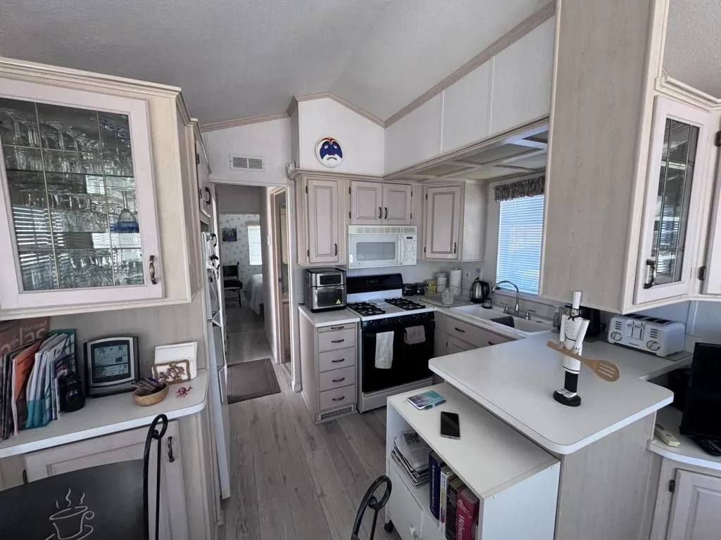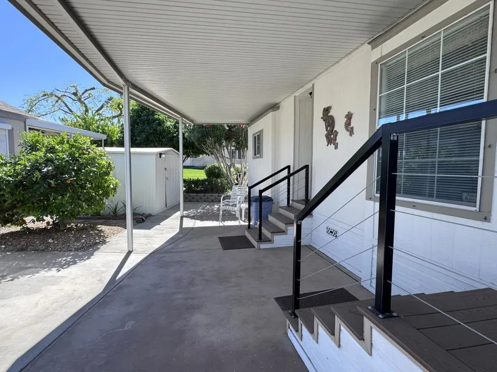Located in the beautiful Desert Aire resort. Desert Aire is an over 55, pet free, 9 month park. Desert Aire does not permit full time residency. This park is primarily used by snow birds looking to spend the winters in our warmer climate.Great location for this 1998 CAVCO park model. This park model is located in section B and just steps away from the main clubhouse. There are several nice areas to sit and relax offering both shade or lots of sun, depending on where you feel like sitting.The large covered patio provides shade throughout the day and a separate patio with table, chairs and umbrella, that offers privacy with a nice hedge surrounding the perimeter and offers views of the mountains and one of the many ponds located through out the park. Both entry ways into the park model have been redone with composite deck material and a modern railing.The interior of the park model is light and airy with high ceilings and lots of windows to let the light inside. All the cabinets throughout the park model have a light finish and adds to the openness this park model provides. The living room is open and offers plenty of seating.The bathroom features high ceilings and a much desired walk in shower. There are more high ceilings in the bedroom with lots of storage and closet space. The large vanity / desk space is an added bonus and provides even more storage.All of the indoor and outdoor furnishings are included in the sale. All kitchen ware and bath ware is included making this a turnkey park model and ready to move in and start enjoying everything Desert Aire provides.