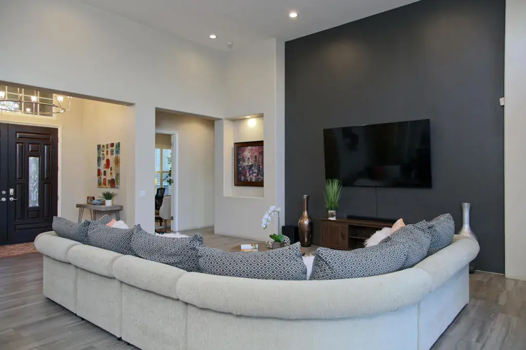 LEASED 1/1/25-3/31/25 Entertainers dream for your home away from home!! Remodeled modern design 4 bed, 4 bath 3400+ sq ft home w/ separate office/Bedroom. Situated on over a 1/2 acre corner lot!! Open concept great room welcomes you w/ 14′ ceilings, modern ceramic tile floors, over sized windows including a panoramic folding patio door giving access to an amazing pool and back yard. Remodeled gourmet kitchen has oversized island, granite tops, high end SS appliances, custom lighting and plenty of cabinet space. The family room has built in entertainment center & corner fireplace w/stone wall accent. Huge master suite has oversized windows w/ amazing views of the back yard, access to back patio. Master bathroom has custom tile floors, freestanding soaking tub, his and hers floating vanities along with a stunning custom tile shower featuring two shower heads! The back yard has to be seen to believe! Rectangular Pebble Tec salt water pool that has built in fire bowls, spacious spa, separate fire pit area, plush landscape w/ custom landscape lighting, concrete walking path as well as seating area, paver patio area w/built in TV. This home has the floor plan and lot size to make it a very comfortable and special home. A great home for your home away from home! Call for a private showing!