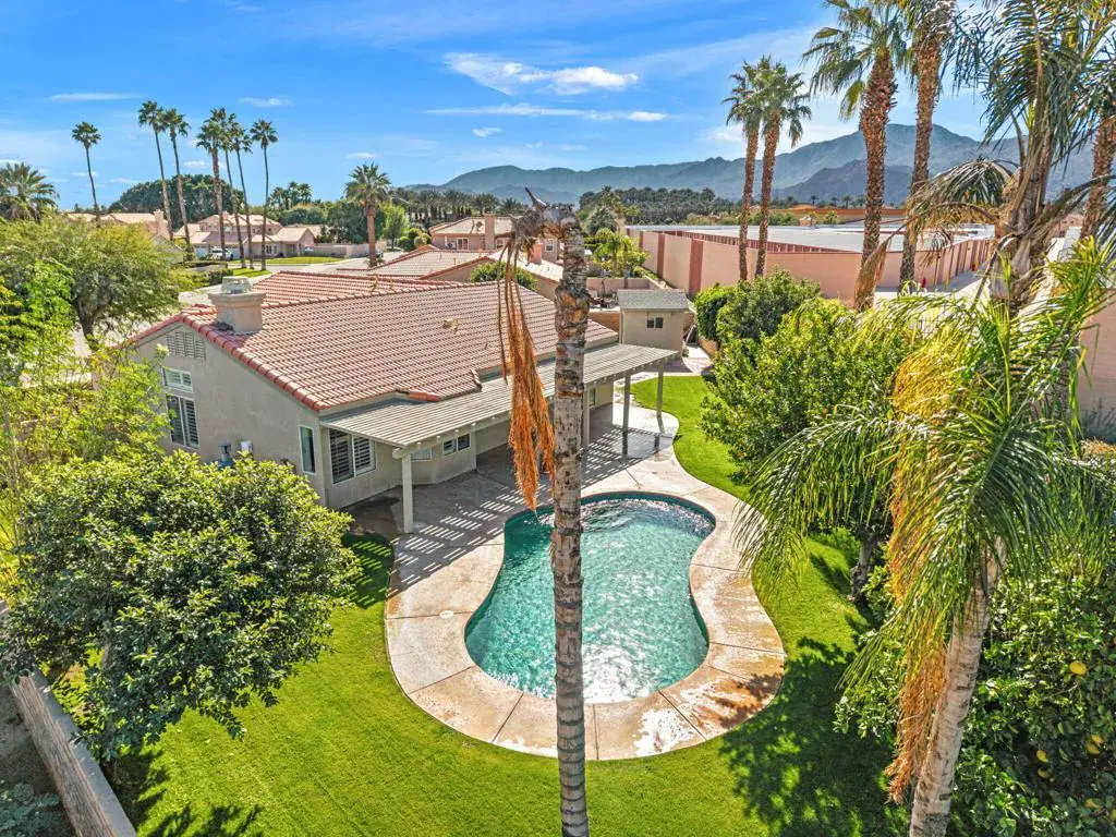 Situated in the desirable Encanto community of Indio, this 1,740 sqft. residence offers 3 bedrooms and 2 bathrooms on an oversized 13,068 sqft. premium lot, with no HOA restrictions. The home features a remodeled primary bathroom and a dining area accented by a fireplace, creating a comfortable and functional setting for everyday living.The kitchen is equipped with a pantry and center island, providing both practicality and ease for meal preparation. Outdoors, a large pebble tech pool anchors the backyard, offering an inviting space for relaxation or entertaining. Recent upgrades include a newer central air conditioning system and a split A/C unit, both approximately two years old.Additional highlights include space for RV parking and a detached garage/work shed in the backyard, previously used for bicycle and tool storage–ideal for hobbies, additional storage, or workspace needs. The expansive lot presents flexibility and opportunity for future enhancements.Well-suited for an investor, first-time buyer, or vacation home, this property is located within the City of Indio, where short-term rentals are permitted. Its proximity to renowned events such as the Coachella and Stagecoach music festivals further enhances its appeal. With no HOA and considerable potential, this home represents a compelling opportunity in a desirable desert community.