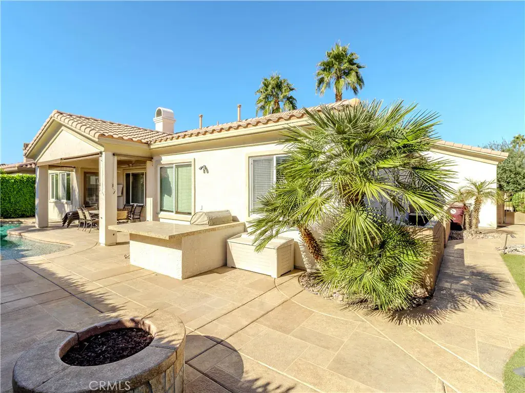 This community of only 140 units is very stable and at the present time this is the only one available in this attractive complex. New owner only has to bring personal items because this is fully furnished with good quality furniture and appliances, it has a pebble tech swimming pool, spa, b-b-q center, and much more. This is truly a turnkey beautiful house. The floor plan is very convenient with two master suites in the West side and two bedrooms and a bath in the East side. One of the bedrooms is a casita with a separate entrance. The outdoor is really a place to be proud of with the gas firepit for comfort in the cool nights. The 3 car garage is very attractive with epoxy finished and plenty of cabinets for storage. The laundry room with washer and drier has a soaking tub and plenty of cabinets. This house is short distance to the Polo Grounds and short distance to shopping and dining in La Quinta. GATED COMMUNITY WITH VERY LOW HOA. SELLER IS MOTIVATED!! TRULY A MOVE IN CONDITION. READY FOR YOU. SHORT TERM RENTALS ALLOWED HERE, 30 DAYS MININUM.