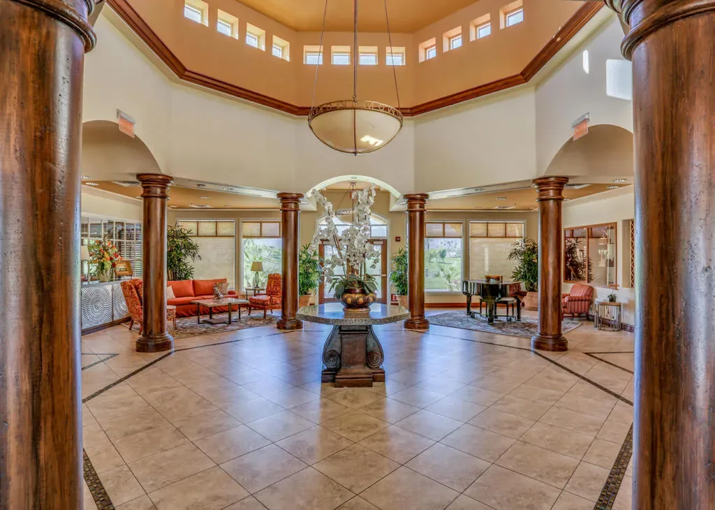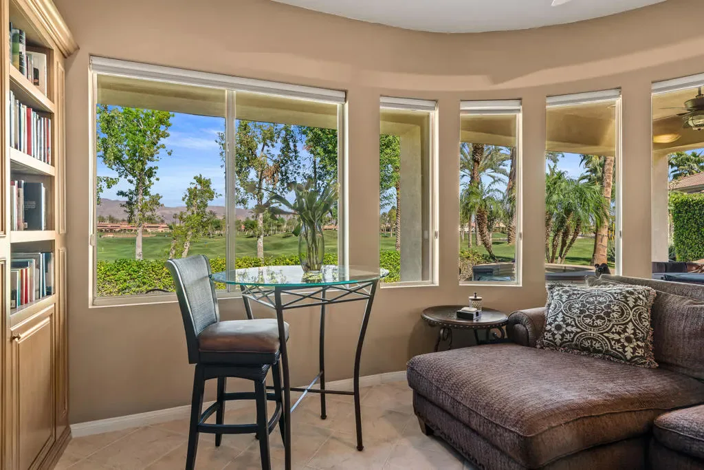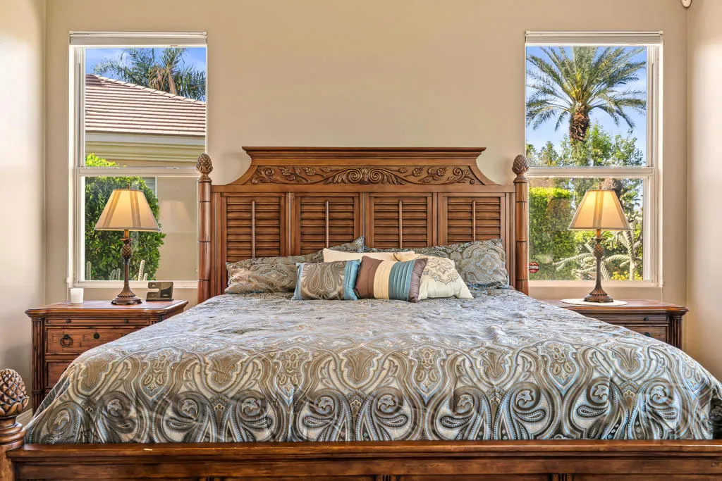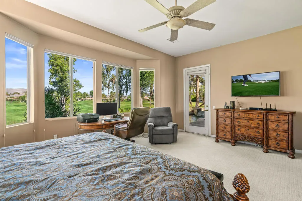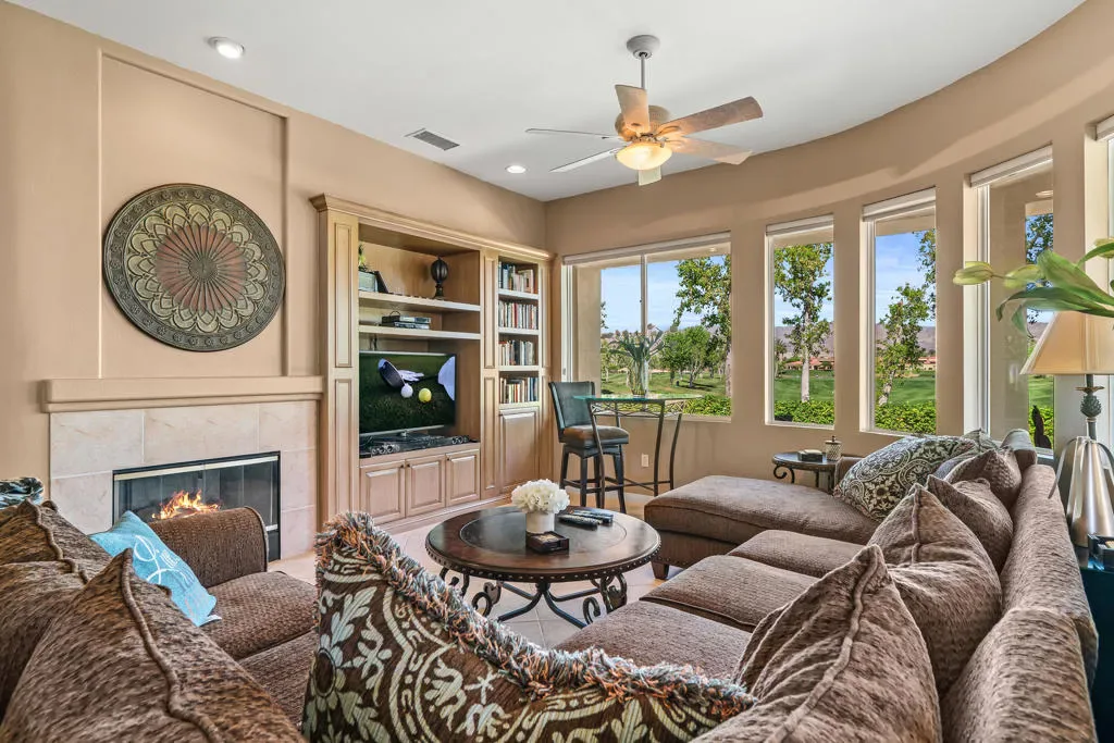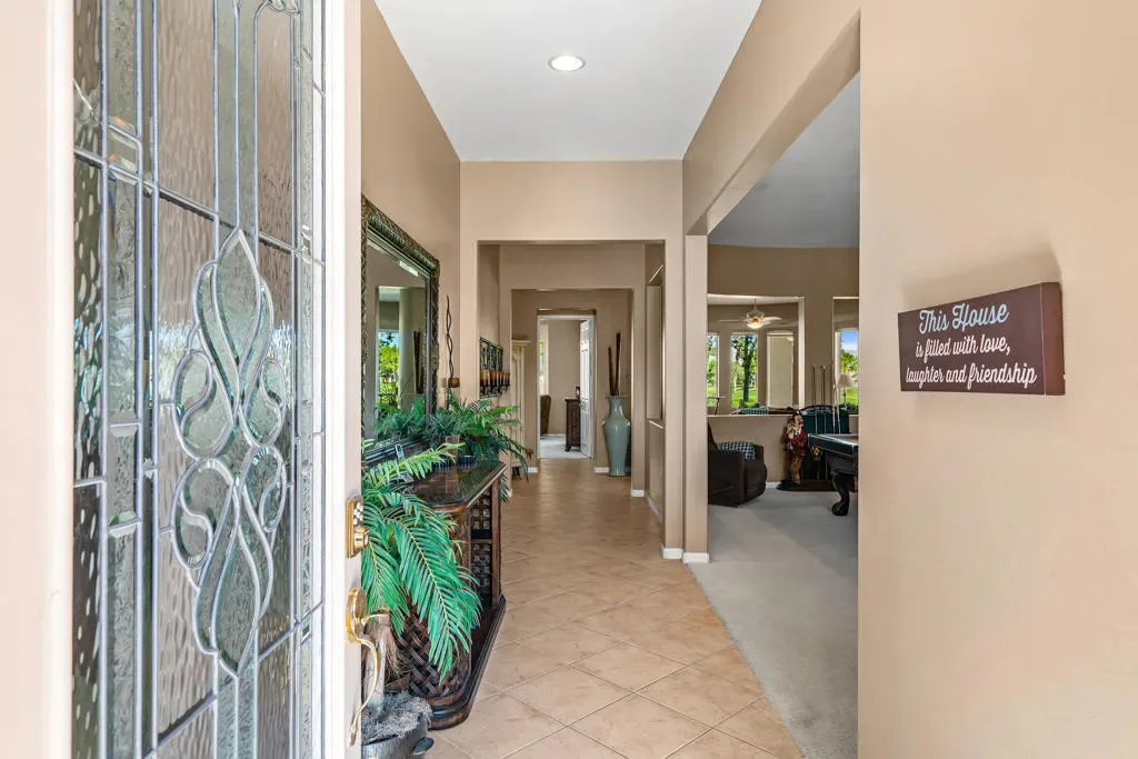 SPECTACULAR PANORAMIC VIEWS from this 2504 sq.ft. 3 bedroom, 2.5 bath home with pool & spa! This home is also being offered TURNKEY FURNISHED. Featuring a courtyard entrance with leaded glass entry door, open plan layout with cozy winter fireplace in the family room, Island kitchen design with DBL ovens and loads of storage cabinetry. Both of the guest bedrooms allow for King size beds and are divided by a ‘Jack & Jill’ DBL vanity bathroom with large shower. There is also a convenient powder room for guests as well. The spacious primary bedroom has the optional bay window, soaking tub with separate shower, large walk-in closet, and French door to your PRIVATE pool/spa area with large covered rear patio with built-in infrared heater. Heritage Palms is a premier adult community featuring an 18 hole championship golf course, pickleball courts, tennis courts, indoor & outdoor pools, fitness center, grill room, billiards room, card rooms, social clubs and more.