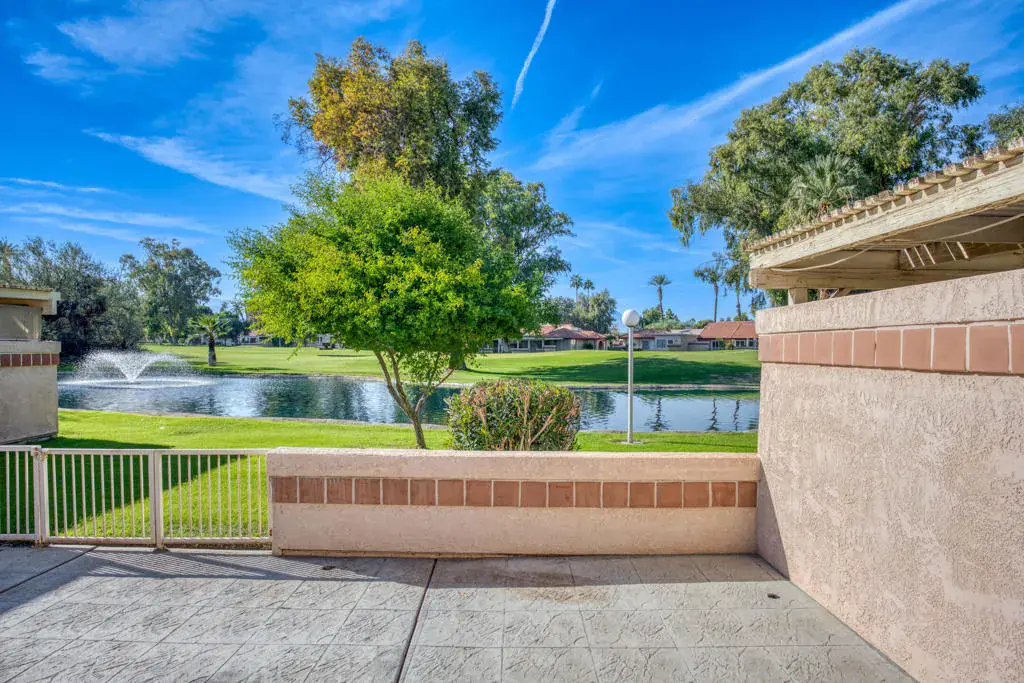 Welcome to Indian Palms Country Club! This 2 bedroom, 2 bathroom condo offers views of the pond with fountain and golf course from the living room, primary suite, and spacious back patio. The AC and the water heater were replaced in 2025, and the home features a 1-car garage plus an additional carport.Inside, the floorplan offers two ensuite bedrooms–each with its own private patio access. The front patio can be accessed from the guest bedroom, while the primary bedroom and living room lead to the picturesque back patio. The interior is all original, providing the opportunity to move in as is or update it to make it your own.Perfect as a full-time residence, seasonal getaway, rental, or investment. Short-term rentals are permitted during Coachella and Stagecoach, Enjoy guard-gated security, resort amenities, and a prime location close to festivals, golf, dining, and shopping.Correction: All condos in HOA 12 will have the exteriors, including garage door and the utility door, painted. The front door, kitchen door and gates will NOT be painted. This should be completed by the end of January, 2026.