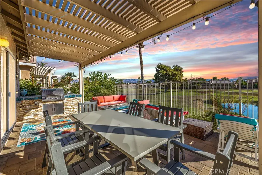A rare opportunity to own one of the most versatile and income-ready homes in the highly sought-after, guard-gated Indian Palms Country Club—one of the Coachella Valley’s most STR-friendly communities and just minutes from the iconic Coachella and Stagecoach festival grounds. Overlooking the golf course with tranquil lake views, this spacious 5-bedroom / 4 bathroom, property consist of the main house with 4 bedrooms and 3 bathrooms and includes a hard-to-find detached casita with its own private entrance an additional bedroom and full bath—perfect for guests, multi-generational living, a private office, or an additional rental suite. The open-concept great room features a fireplace and flows seamlessly into the dining area, while the kitchen offers a breakfast bar, recessed lighting, tile countertops, and abundant storage. The primary suite provides a private retreat with a soaking tub and generous closet space. Step outside to a backyard built for entertaining—complete with a built-in BBQ, covered patio, and unobstructed fairway and water views. Indian Palms Country Club delivers true resort-style living with multiple pools and spas, tennis, pickleball, clubhouse, fitness center, restaurant, and pay-as-you-play golf—no costly memberships required. Close to shopping, dining, freeway access, and the Empire Polo Club, the location is ideal for both personal use and high-demand vacation rentals. Currently operated as a successful short-term rental, the home is offered fully furnished and has gross revenue potential of $111,000+ annually with cap rates up to 10.8% self-managed or 8.9% with professional management—making it a standout opportunity for investors, second-home buyers, or anyone seeking a profitable desert escape in one of the valley’s most popular STR zones. Whether you’re looking for a full-time residence, a turnkey income property, or a vacation home with serious earning power, this one checks every box.
