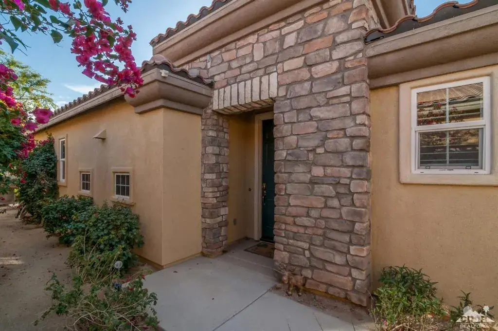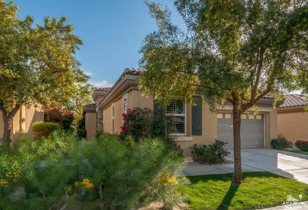 Ultimate location on the Water w/ panoramic Southwest Mountain views! Short term rentals permitted.Quaint open floor plan w/two Master suites each w/ their own ensuite and walk in closets. A niche area off the master bedroom w/ extra cabinetry and a 3rd bathroom for guests. The living room & master bedrm have direct rear patio access and views of the lake, mountains & flowing stream! A 2nd private patio off the dining area; both patios offer excellent outdoor living. Landscape features include a large lemon tree, colorful desert plant life & palm tree. Remodeled modern open kitchen now has an oversize granite island with wine fridge, newer dishwasher, glass block windows, double oven, double sink & pantry! Indoor dining or take the party outside to the enlarged patio with Alumna overhang a custom overhang heater for the cooler evenings and of course the commercial grade Mister system for those warm summer nights! Upgrades include paint, flooring, newer AC ceiling fans and shutters throughout. Indoor laundry & 2 car tandem garage. Fitness includes Bocce ball, pickle ball tennis & main pool & spa. IPCC offers 27 holes of golf, clubhouse and walking distance to Coachella music Festivals.Furnishings & Golf Cart can be made available outside of Escrow per Seller inventory list.