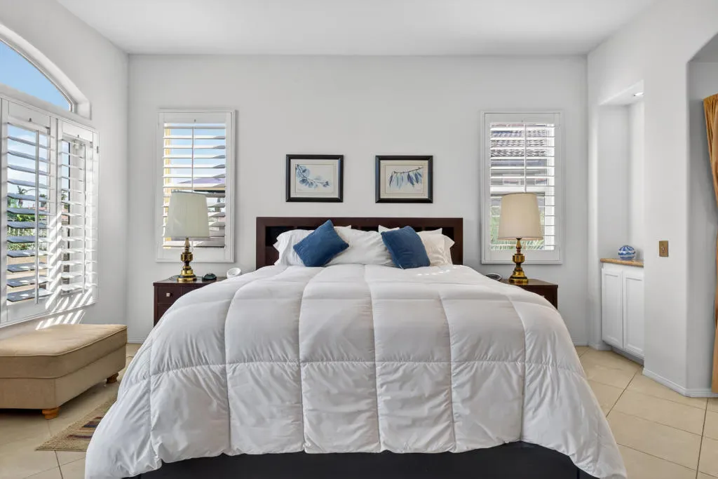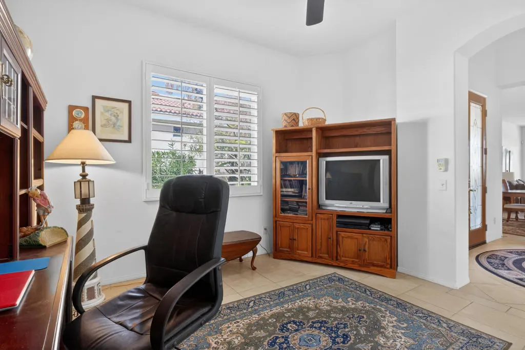Welcome to your private desert retreat in the sought-after gated community of Indian Palms Country Club. Situated on a quiet cul-de-sac, this beautifully maintained home offers the perfect blend of comfort, space, and resort-style living.Step inside to soaring ceilings and an open, light-filled layout that creates an inviting and airy atmosphere. The spacious living area flows seamlessly into the kitchen, featuring granite countertops, abundant cabinetry, and a breakfast bar ideal for casual dining or entertaining.The thoughtfully designed floor plan offers excellent separation of space, including a generous primary suite with direct access to the backyard and a well-appointed en-suite bath with dual vanities, soaking tub, and separate shower. In addition to the primary suite and secondary ensuite bedroom, the home features a separate office just off the entry, as well as a flexible retreat space off the guest bedroom–ideal for a third bedroom, exercise room, or private sitting area.Outdoors, enjoy your own private oasis with a sparkling pool and spa, covered patio, and multiple areas for relaxing or entertaining–all set against a serene backdrop with no rear neighbors. Whether you’re enjoying a quiet morning coffee or hosting under the desert sky, this backyard delivers.Additional features include a 2-car garage, indoor laundry room, and access to Indian Palms Country Club amenities, including golf, tennis, pickleball, and more.Whether you’re looking for a full-time residence, seasonal getaway, or investment opportunity, this home offers exceptional value and the best of desert living.