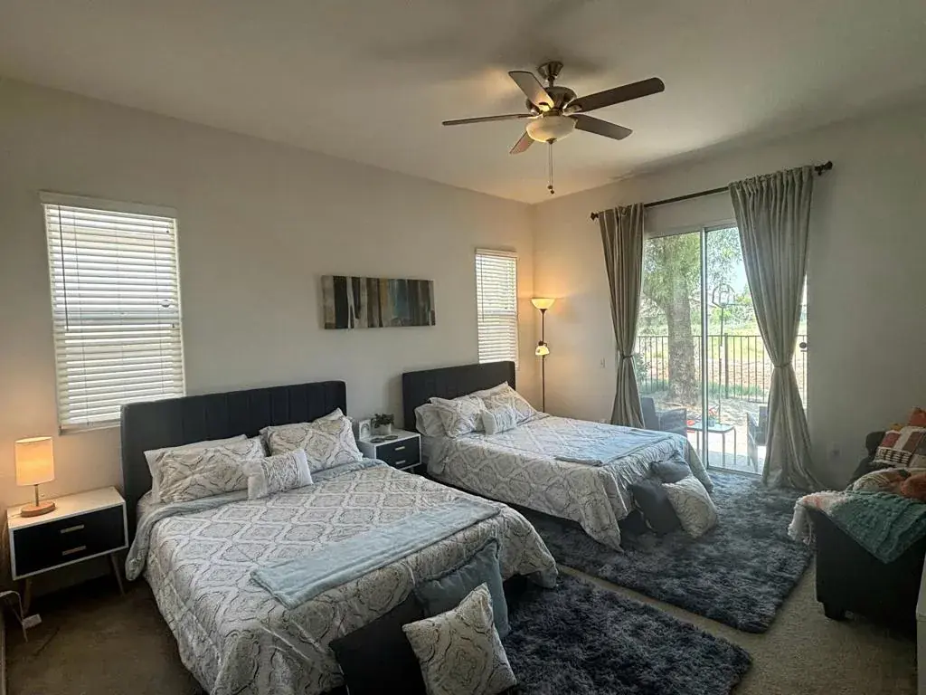 Indian Palms CC is a gated community. This home is furnished for a 30 day minimum rental This $2800.00 is the summer rate only. Home features an open living room and kitchen, and dining area. A nice breakfast bar, 2 bedrooms and 2 baths. The primary suite feature 2 queens beds, has a walk in closet and a slider leading out to the back patio. The 2nd bedroom has king bed, Separate laundry room with a utility sink. This home is furnished 2 car garage. Home is close to shopping, banking, fast food and restaurants, Starbucks. 3 community pools and spa’s, lifestyle center( (Newer workout equipment.), pickle ball , bocce ball, tennis etc. Come live the CC lifestyle. Golf course is public so you pay as you play. Jan- March the rate is $4500.00 a month, April $4700.00 festival rate, May – October $2800.00 per month. November and December the lease amount is $4000.00