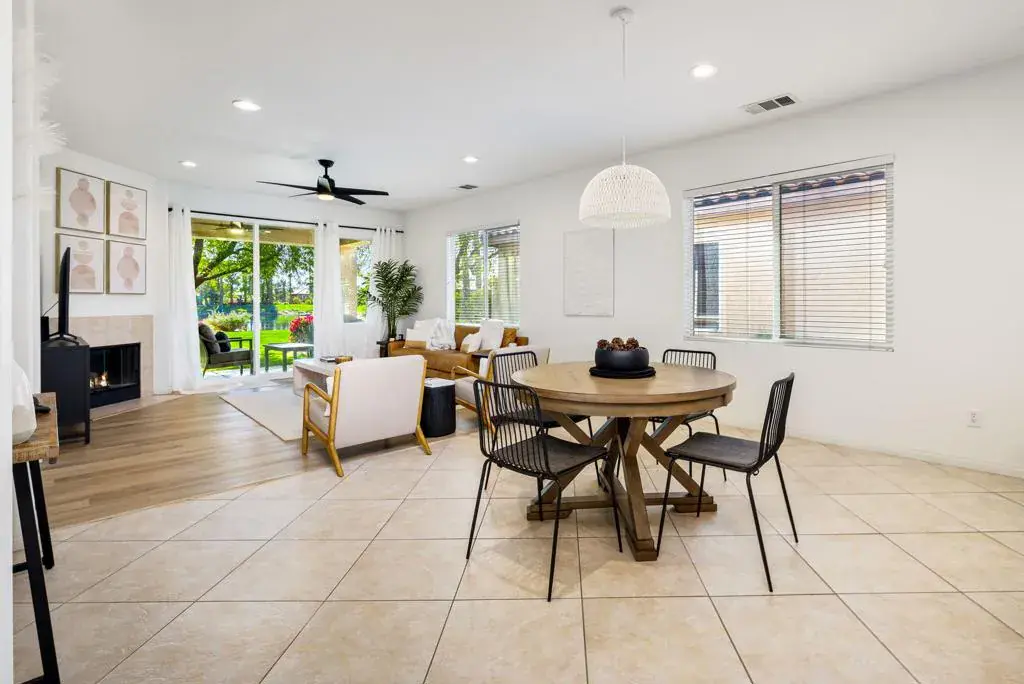 Seasonal Rental. Discover a stylish desert haven just steps away from the Empire Polo Club and a 15 min drive to DIHP. This tastefully furnished 3-bed, 2.5-bath home offers an elegant and spacious interior is a perfect place to relax after a day of exploring the vibrant surroundings. Unwind on the patio with breathtaking pond views while sipping a glass of wine or your morning coffee. Enjoy access to a gym, community pools, spas, tennis and pickleball. Book with us today and experience Desert Living at its best.