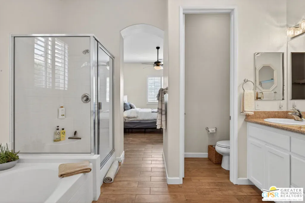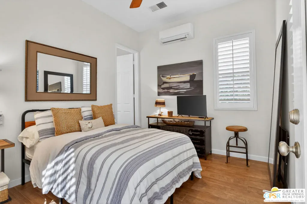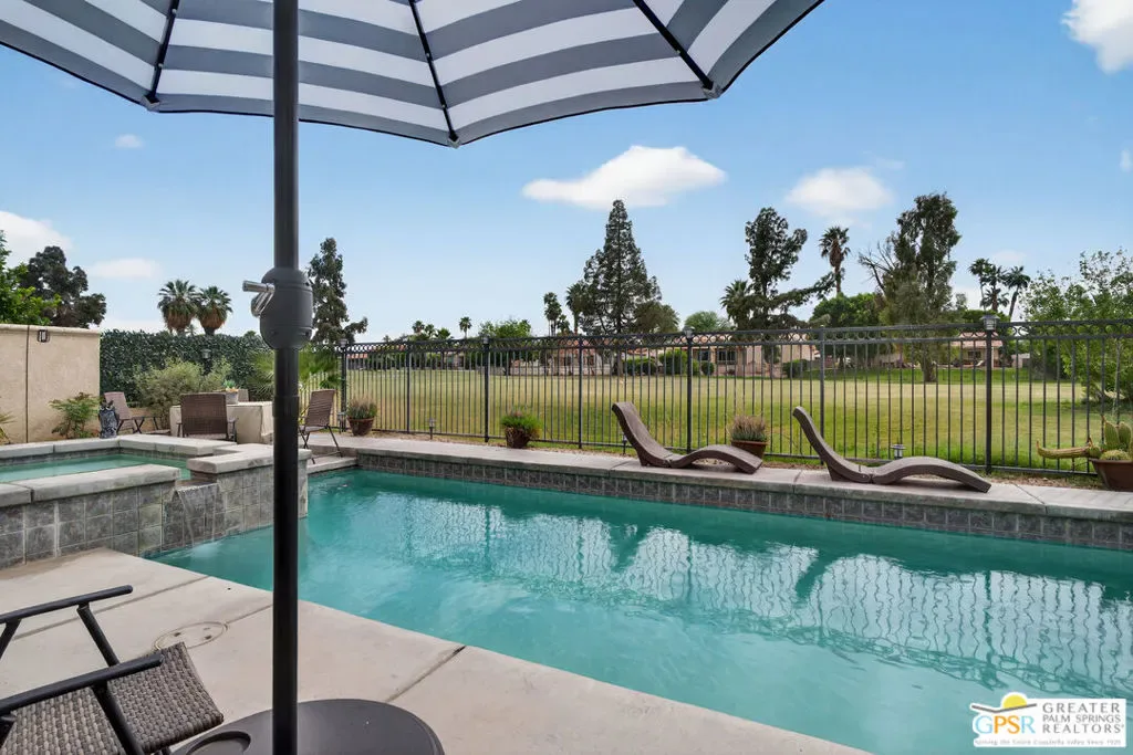 An Exceptional Investment Opportunity in Indian Palms Country Club. Located within one of Indio’s most sought-after guard-gated golf communities where short-term rentals are permitted, this exceptional property offers the ideal blend of lifestyle and income potential. Perfectly positioned within walking distance to the world-renowned Coachella and Stagecoach festival grounds and just a short drive to premier shopping, dining, and entertainment, the location continues to attract strong and consistent guest demand. This five-star reviewed home is offered fully furnished and turnkey, ready for immediate enjoyment or rental use. The property has demonstrated a strong short-term rental history, making it an outstanding opportunity for buyers seeking both a personal retreat and potential income generation. Inside, an open-concept floor plan welcomes you with a spacious great room featuring tall ceilings, a gas fireplace, and seamless flow into the dining and kitchen areas. The thoughtfully designed layout includes 3 bedrooms and 3 bathrooms, including a private casita. There is a separate den that can easily function as a fourth bedroom, maximizing flexibility for guests, rental use, or a home office. The primary suite serves as a peaceful retreat, complete with a luxurious ensuite bath featuring a dual sink vanity, a soaking tub and a walk-in shower. Guest bedrooms offer comfort and versatility, while a full laundry room with built-ins adds everyday convenience. Step out to a private resort-style setting, where a screened-in loggia overlooks the salt water pool and spa, with views extending across the golf course to the surrounding mountains. Patio spaces and multiple lounging areas create an inviting environment for outdoor dining, relaxation, and entertaining year-round. As a resident of Indian Palms Country Club, enjoy access to a wide range of amenities, including a 27-hole golf course, clubhouse with restaurant and bar, multiple pools and spas, fitness center, and tennis, pickleball, and bocce courts.