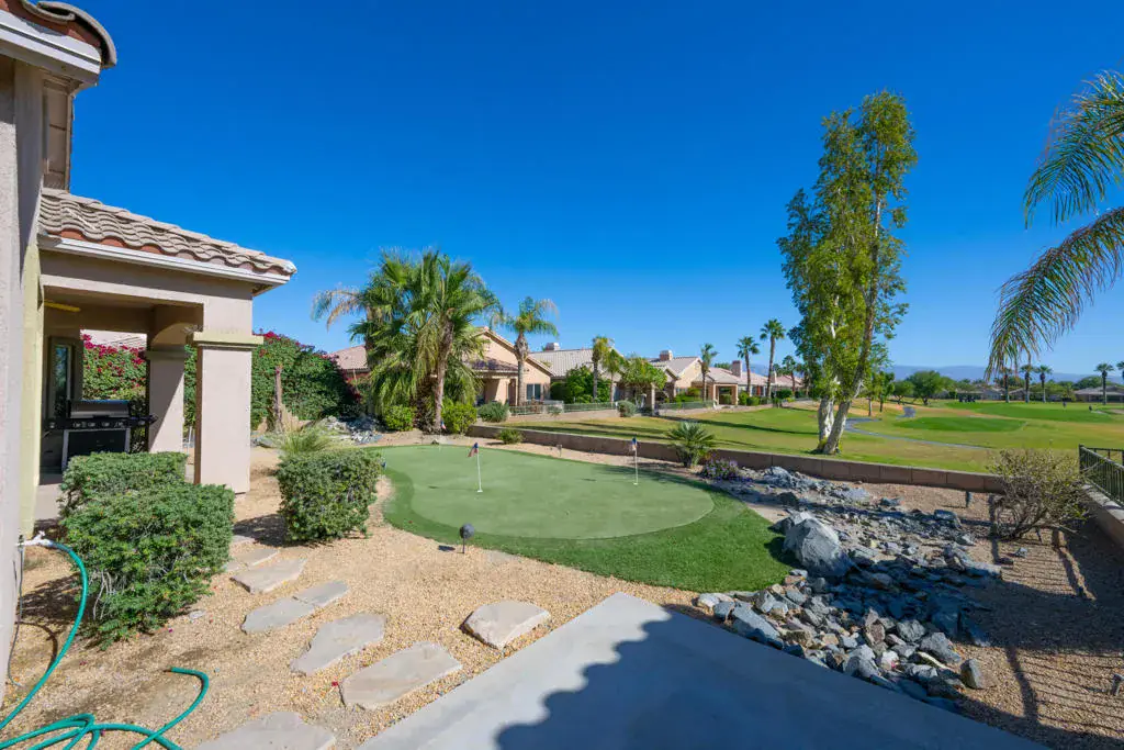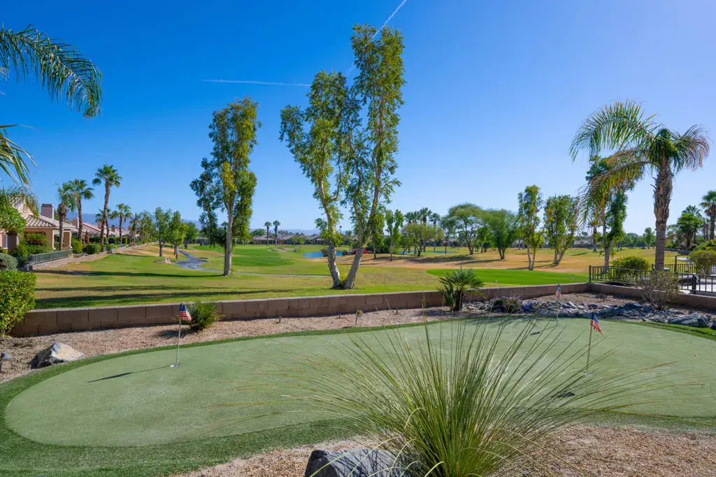 Turnkey and ready-to-go, this 3 bedroom 2 bath open floorplan offers an amazing view down the 17th hole. Plus, the community pool, spa, and fitness center located across the street! Home is advertised for an annual lease for $3,300 (including HOA fees, cable tv & internet, not including utilities). However it is available monthly at $4,700 (utility allowance included) for Jan/Feb/Mar and $5,000 for April. Call for deposit and fees. Home is also a very short walk to Amelia Earhart Elementary School, John Glenn Middle School, and La Quinta High School. Community is very close to the highway 10 and the highway 111 shopping corridor in La Quinta. Indian Springs is a local and snow bird favorite community due to its great location near town & schools, and the popular Big Rock Pub and Golf Course at Indian Springs offering great food and golf at reasonable rates! Home is ready for immediate occupancy!Be sure to view 3D Virtual Tour of this home!
