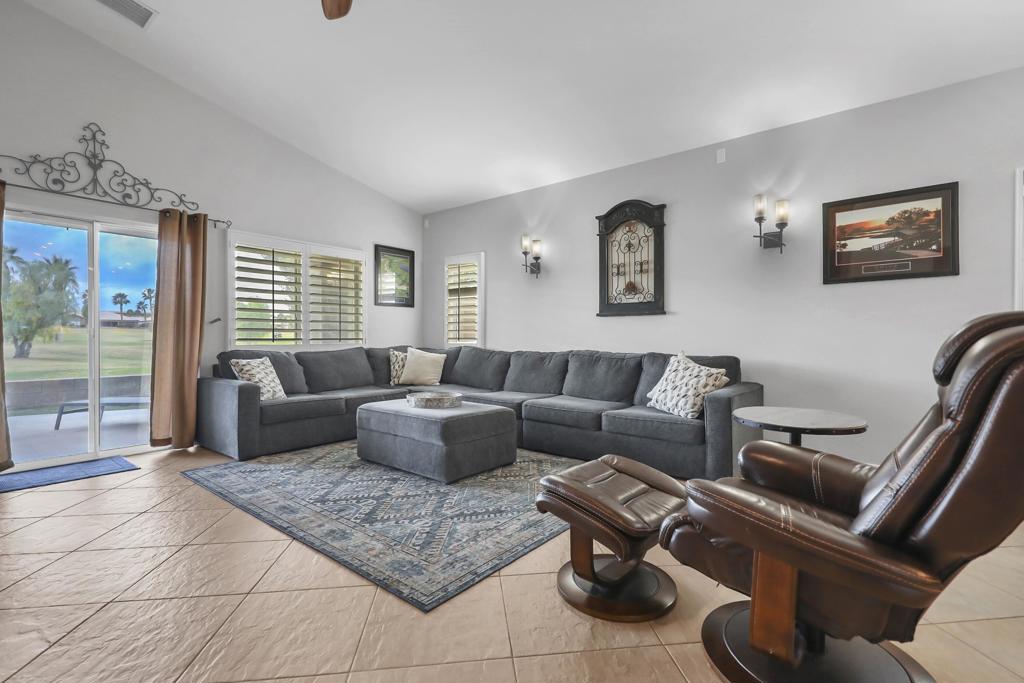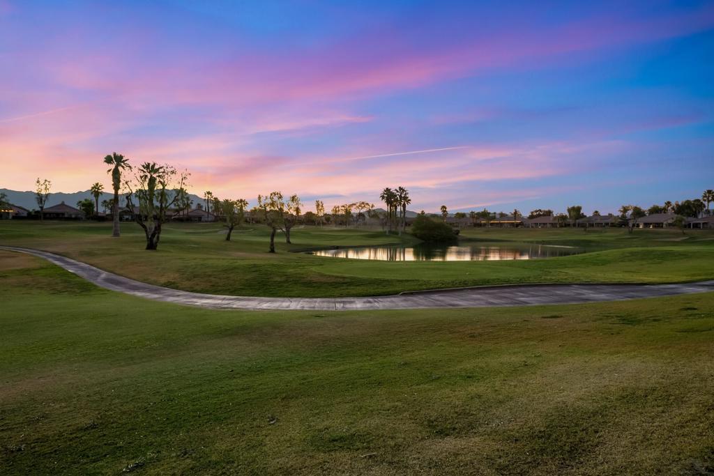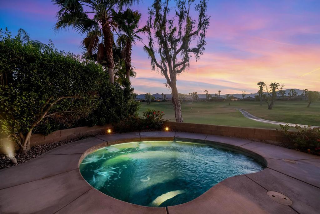 Experience resort-style living on the 18th Fairway Tee Box of the exceptional Indian Springs Golf Course! This spacious 3-bedroom, 3-bath residence–including a desirable attached casita–offers 1,981 square feet of thoughtfully designed open living space, perfect for full-time living or a luxury desert retreat.The expansive open kitchen features granite countertops, rich maple cabinetry, abundant storage and prep space, and a convenient breakfast bar that flows seamlessly into the dining area and great room–ideal for entertaining. The inviting living room is highlighted by a stunning custom stone gas fireplace, while tile and laminate wood flooring and shutters throughout add style and low-maintenance comfort.Step outside to your private spa/spool and take in remarkable panoramic views of the lake, manicured fairways, and breathtaking San Jacinto and Santa Rosa Mountains–an incredible backdrop for relaxing or hosting guests.Low HOA fees enhance the lifestyle with front yard landscape maintenance, 24-hour gated security, FIOS cable TV and internet, plus access to the community pool, spa, and fitness center. Enjoy the ultimate convenience of being within walking distance to the popular Big Rock Pub.This is desert living at its finest–where golf, views, and luxury come together!